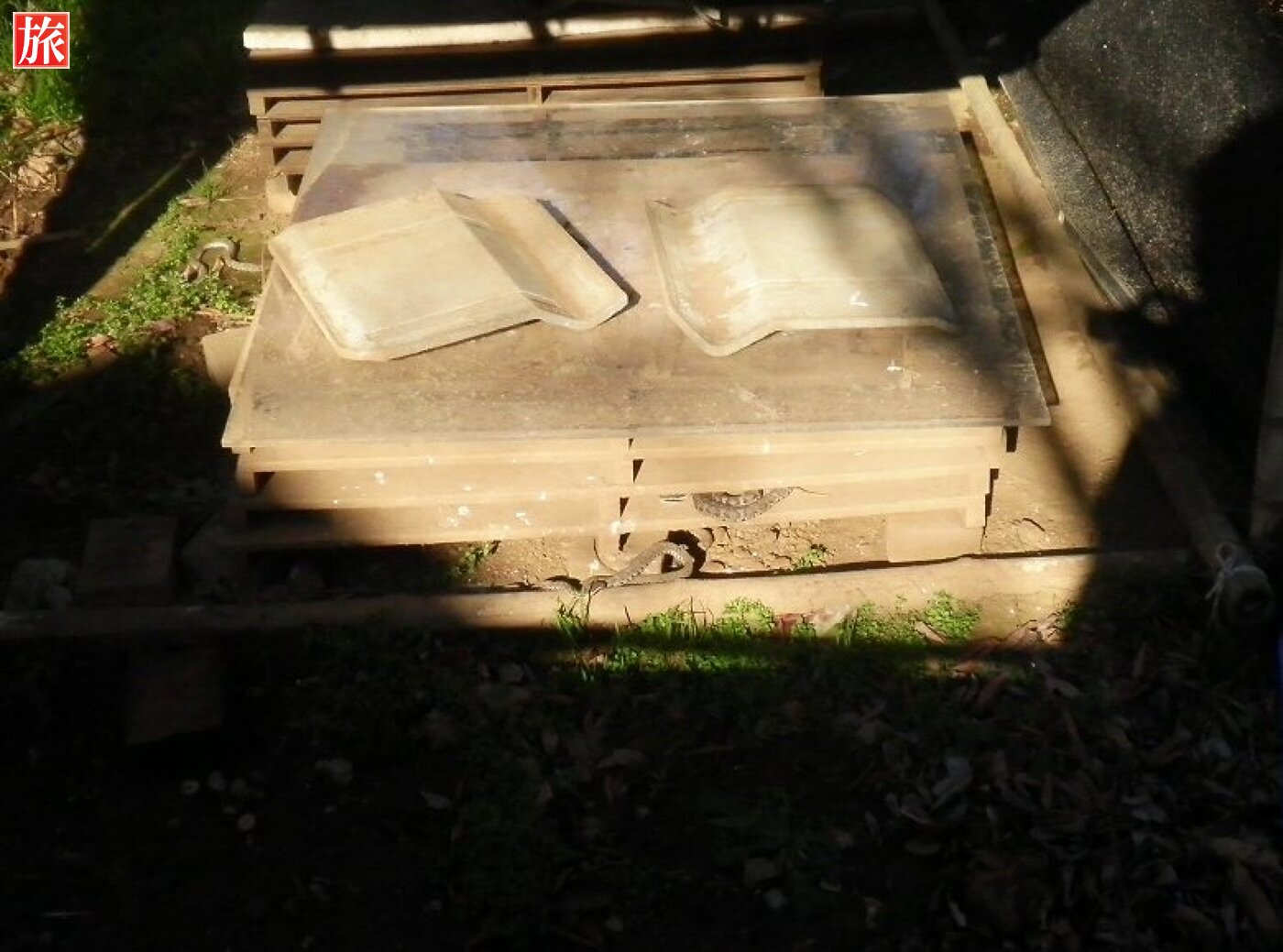 マムシが日向ぼっこしていました、右の青いビニールシートの上の方に何匹か居ます。マムシも冬眠はするはずです。
