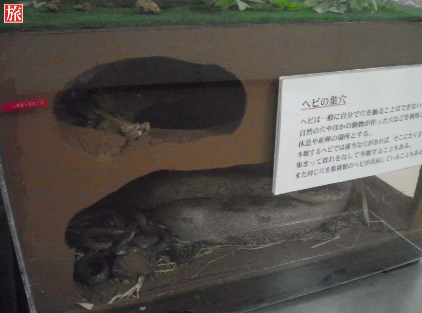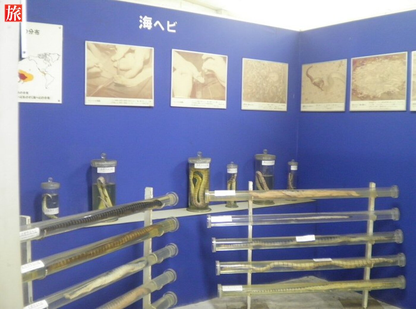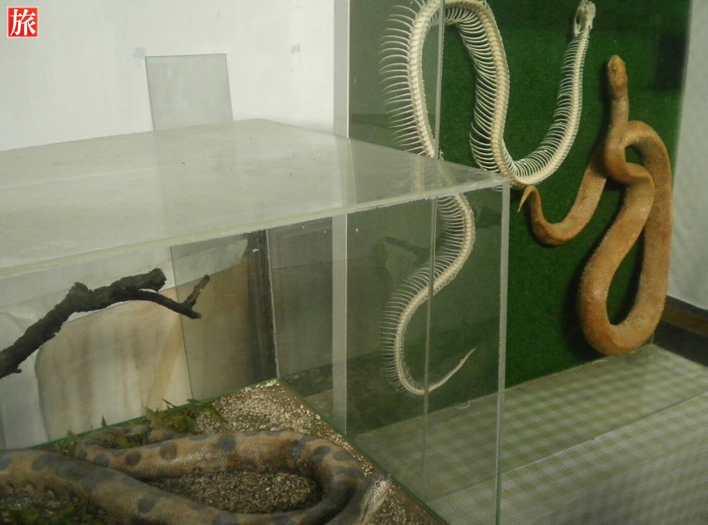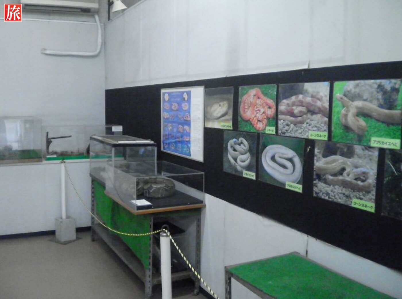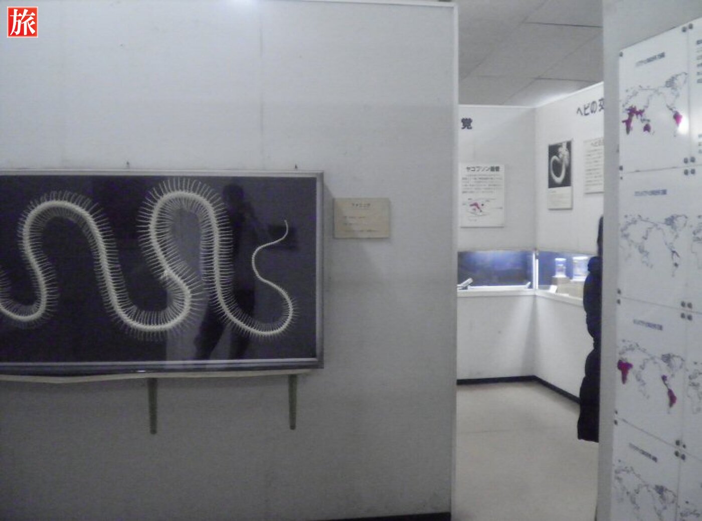 資料館、蛇の骨、模型、剥製など並んでおります。