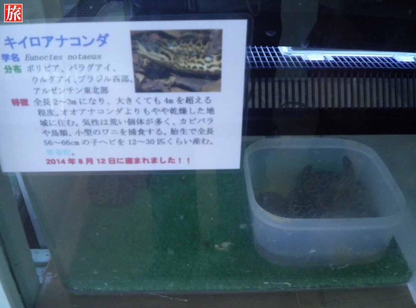 今年9月頃にキイロアナコンダの赤ちゃんが生まれたそうです。沢山いました。右はシマヘビの赤ちゃん。ペットとして欲しくなるかわいさです。
