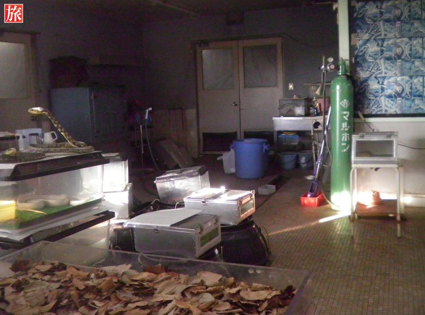 採毒室、こちらでこの日午後3時からハブの採毒実験が行われます。