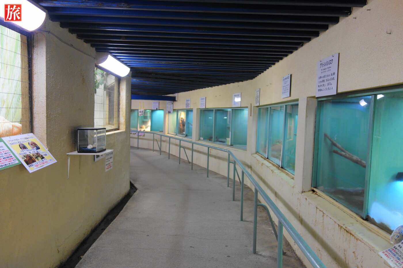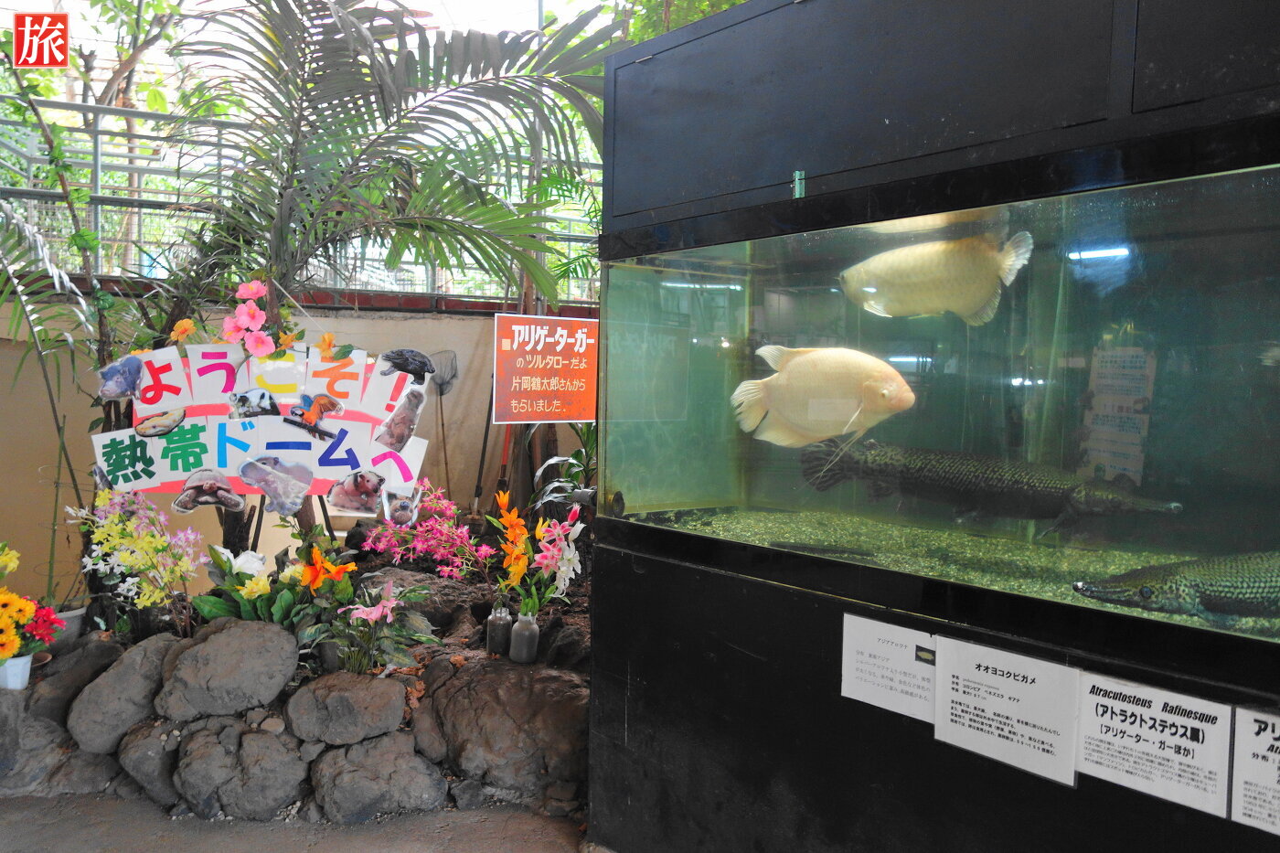 猿山のモンキーパラダイスにはニホンザルが・・・熱帯大ドームの入口。入場してすぐ右手にあった大きな水槽。