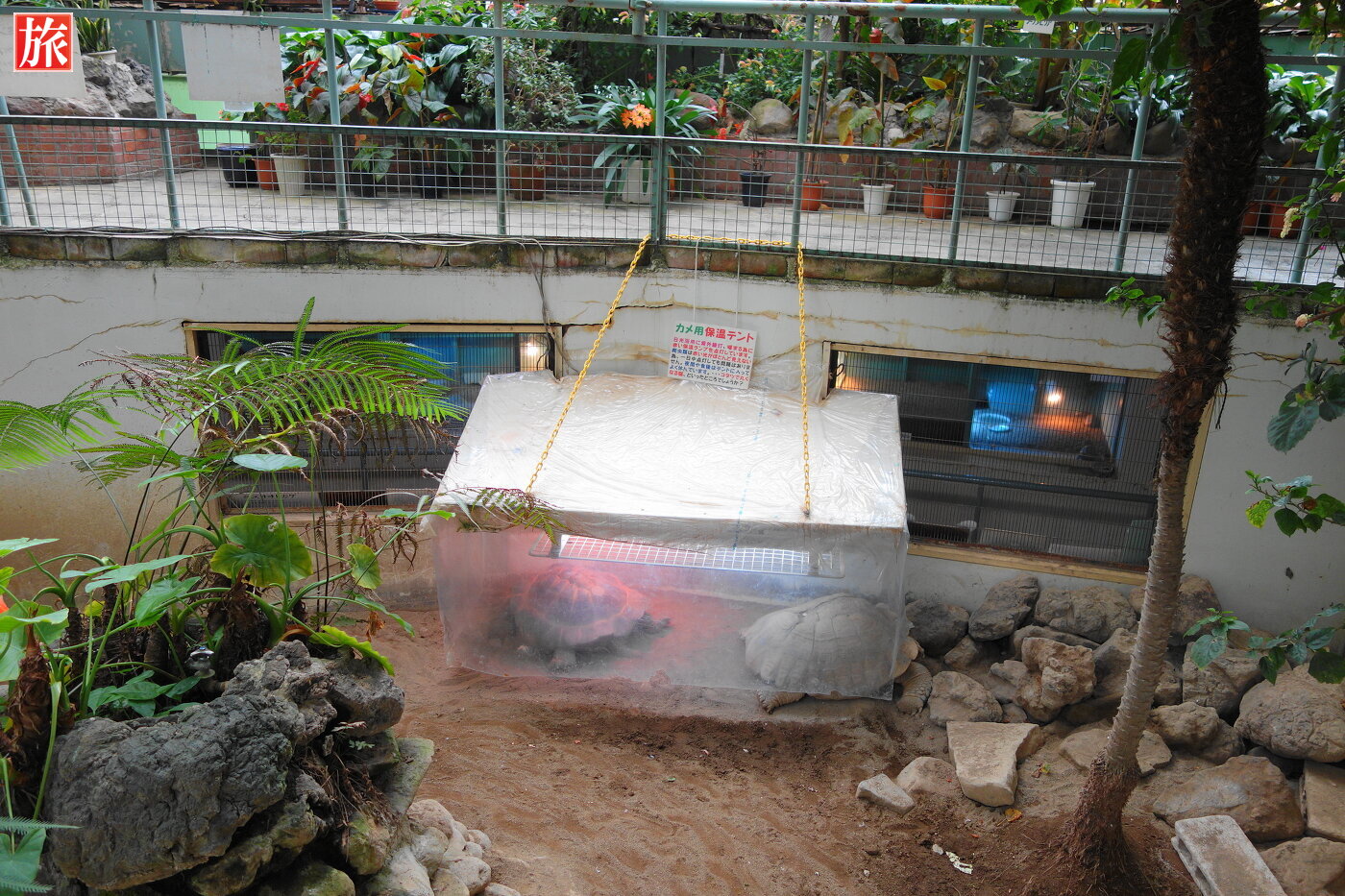 ドームの中は高さ15メートルで3層に分けられたゾーンは草津温泉の熱を利用した亜熱帯とのことです。陸ガメ。中央付近にあった白蛇を祭る祭壇。