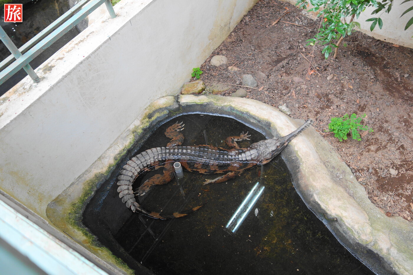 カメ・・・ドーム外周には爬虫類が沢山展示されています。上部から眺めたガビアルモドキ。