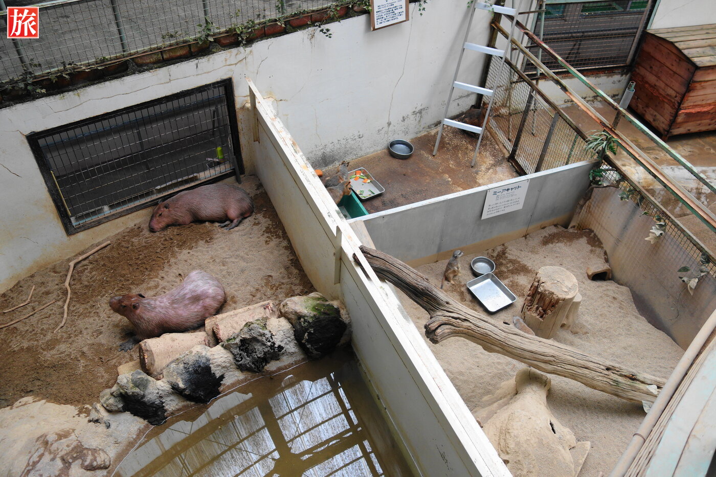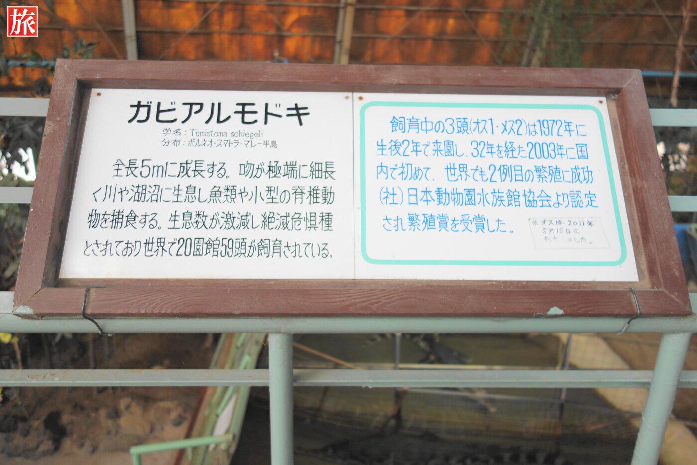 ガビアルモドキの説明。インコ舎。カピバラやミーアキャット。