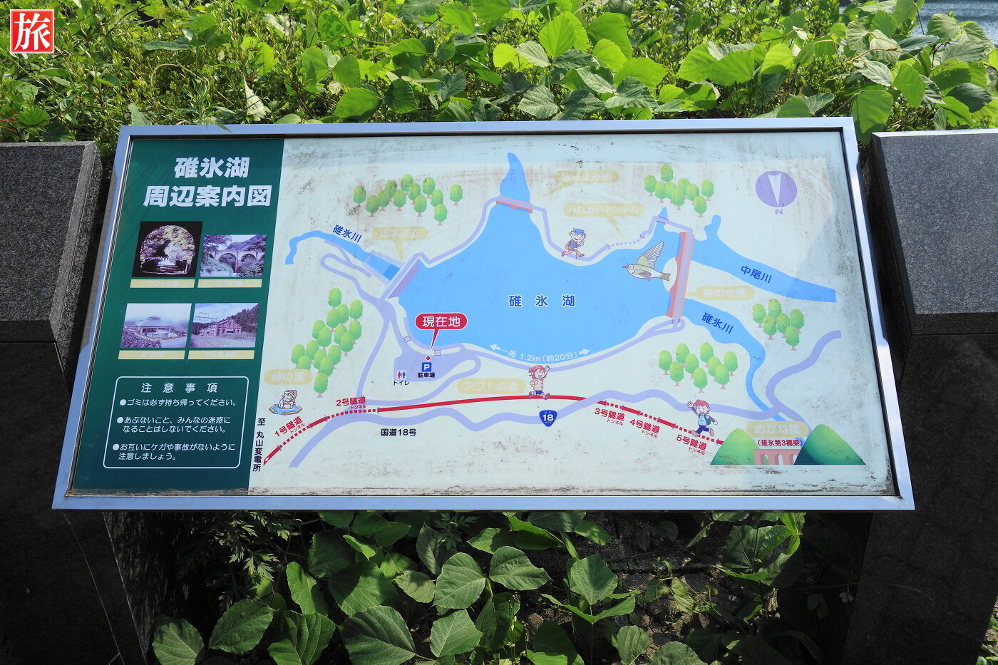 碓氷湖周辺の案内図。東屋が設置されています。トイレも完備。