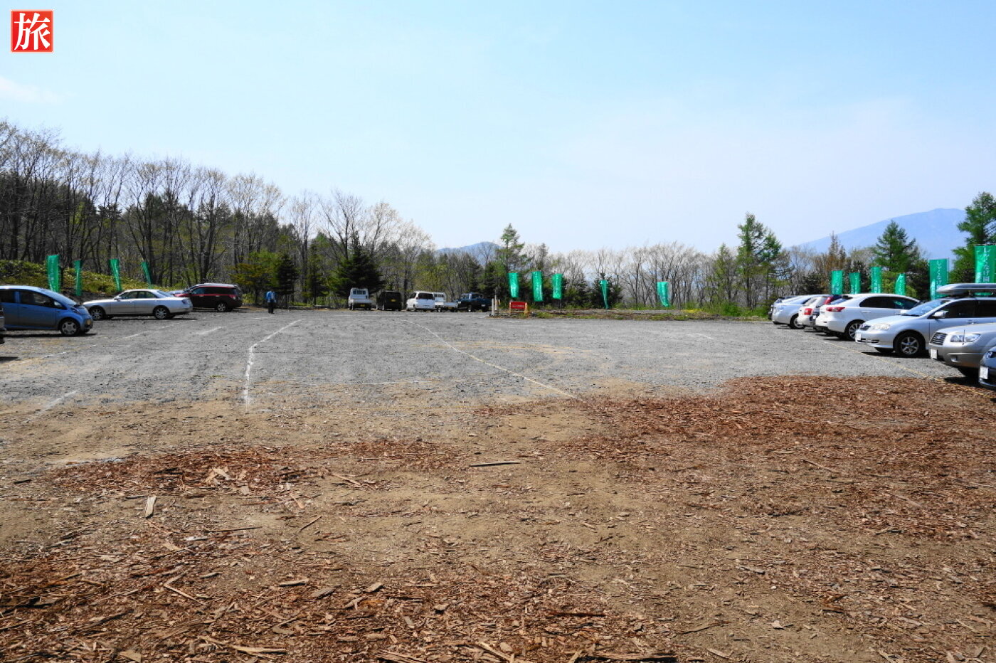駐車場にある注意書き。シャクナゲ園のマップもありました。駐車場の様子です。駐車場から北方向を望む。
