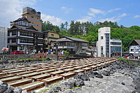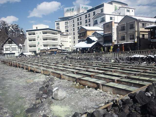 草津温泉のシンボル、町の中心に沸く源泉地湯畑の中に、四角に組まれた木の枠が沈んでいる。湯畑の源泉の中に、この木枠の中の湯を「御汲上の湯」と呼んでいる。