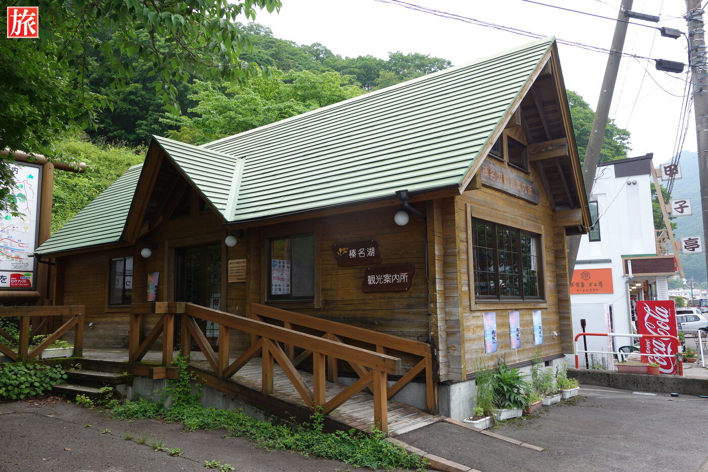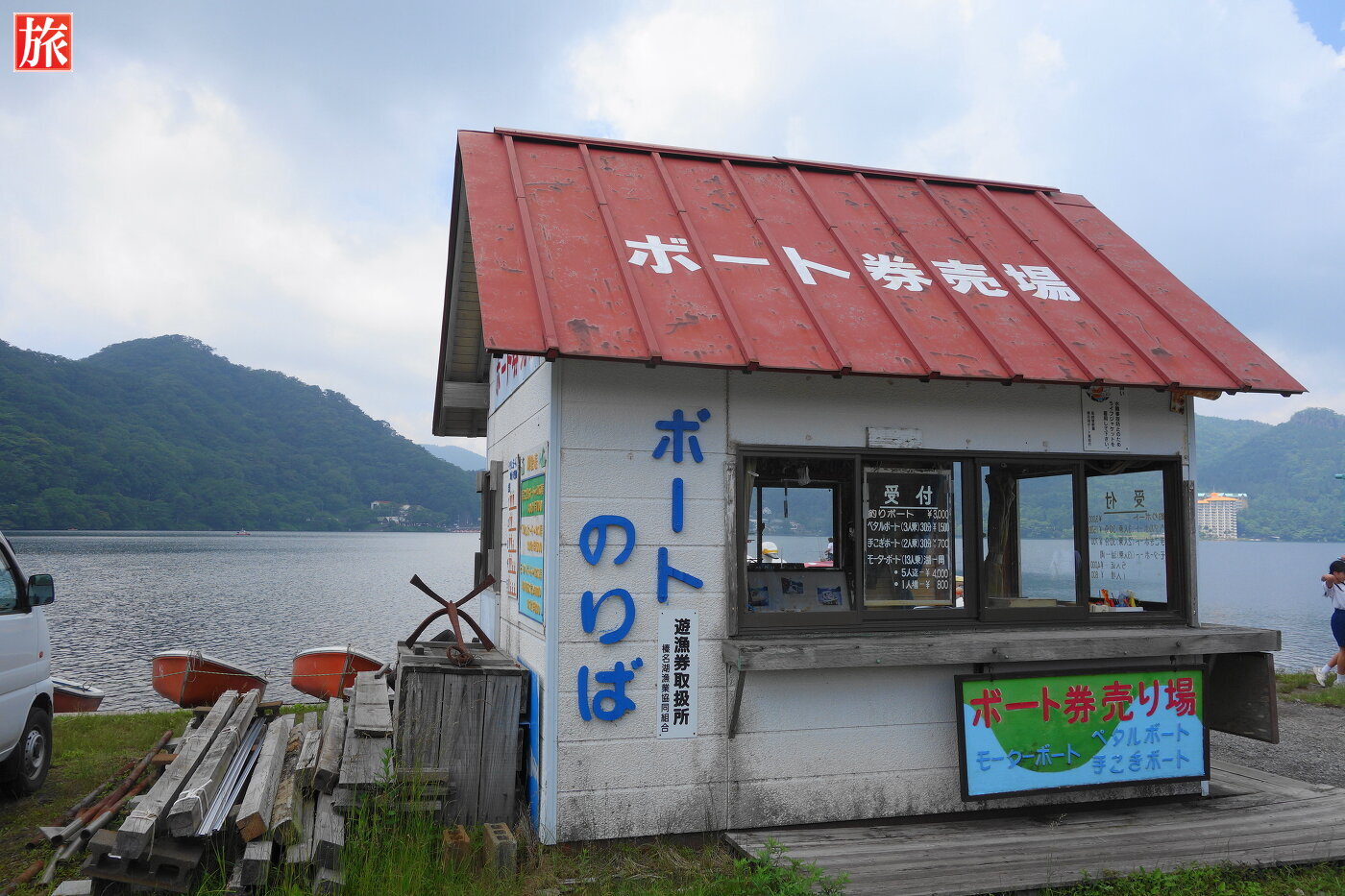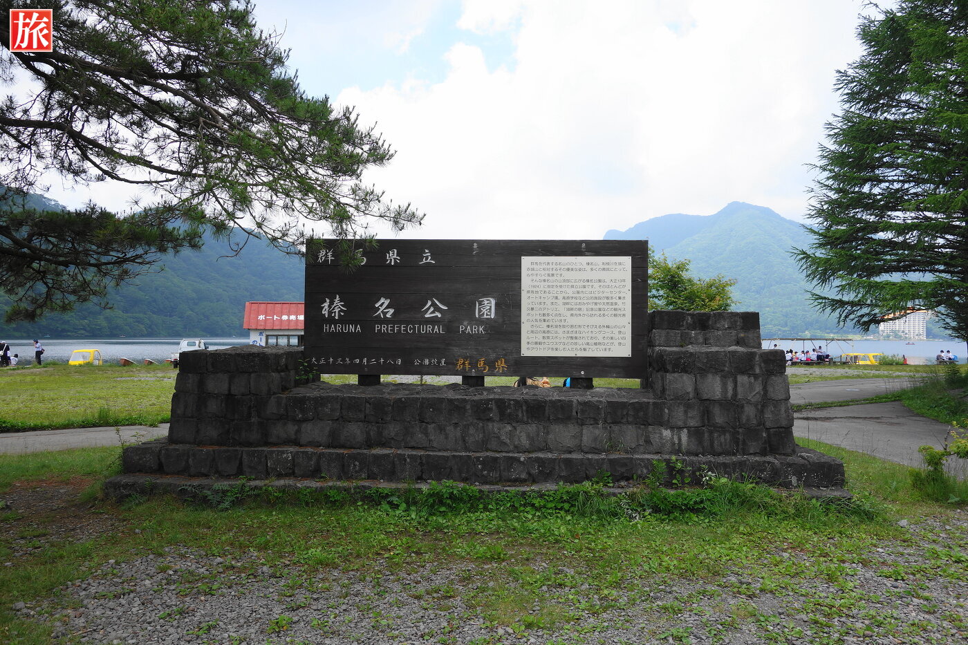 観光案内所付近に移動しました。お食事処もあります。この付近はホタルの発生地として知られます。榛名山と榛名湖の風景。