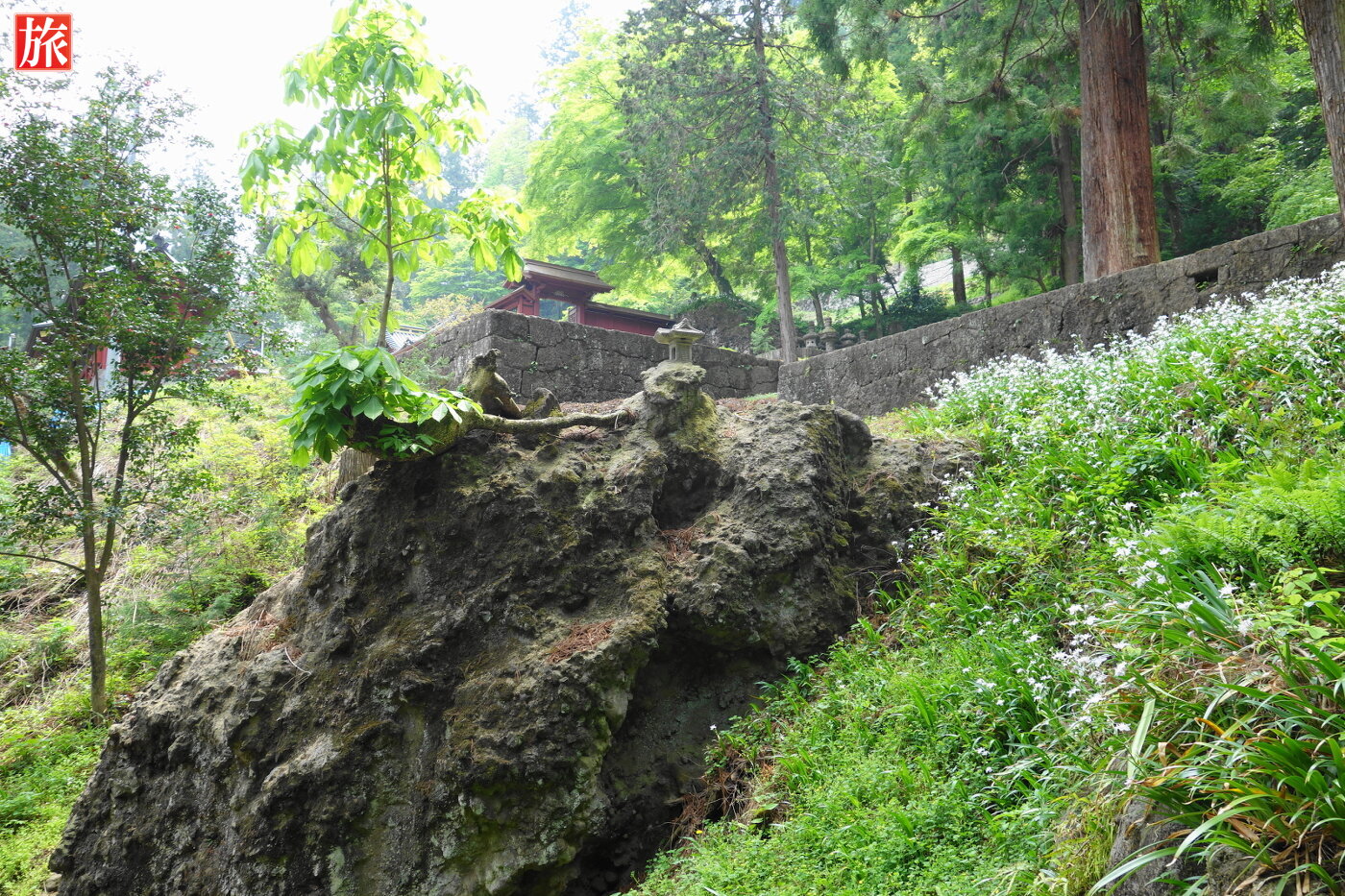 御本社の屋根と透塀。心願成就のご利益がある御本社の裏側の「天狗社」。 妙義山には、 天狗がいるという言い伝えがあります。
