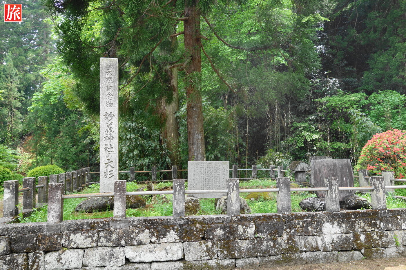 参道左手側にある妙義神社の大杉の子孫。大杉の子孫の説明。稲荷社。境内社。