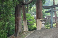 参道に立つ青銅大鳥居の左側にある樹齢500年の大杉3本杉に囲まれた三角形の空間が、パワースポットとして知られています。