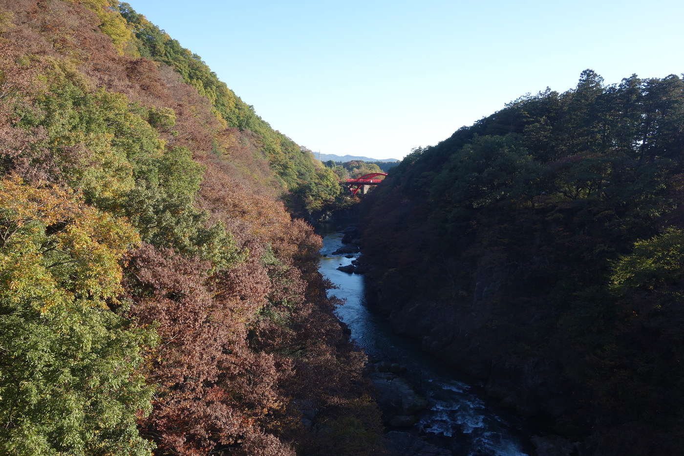 高津戸峡にかかる全長120mの歩行者専用橋。