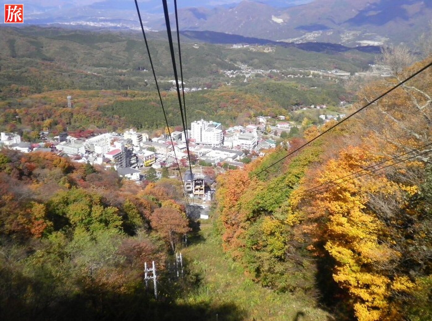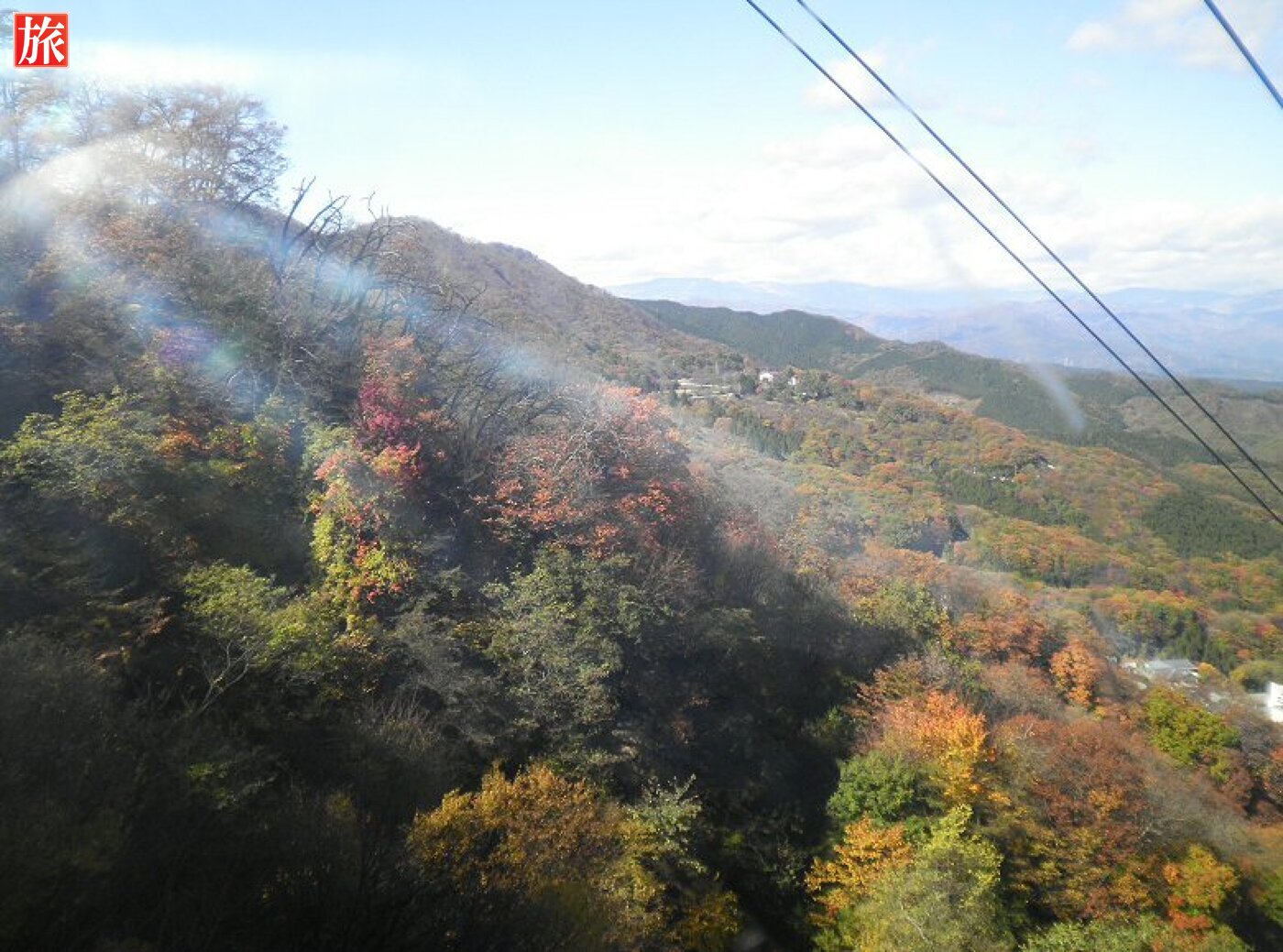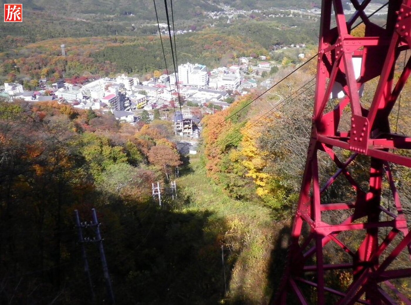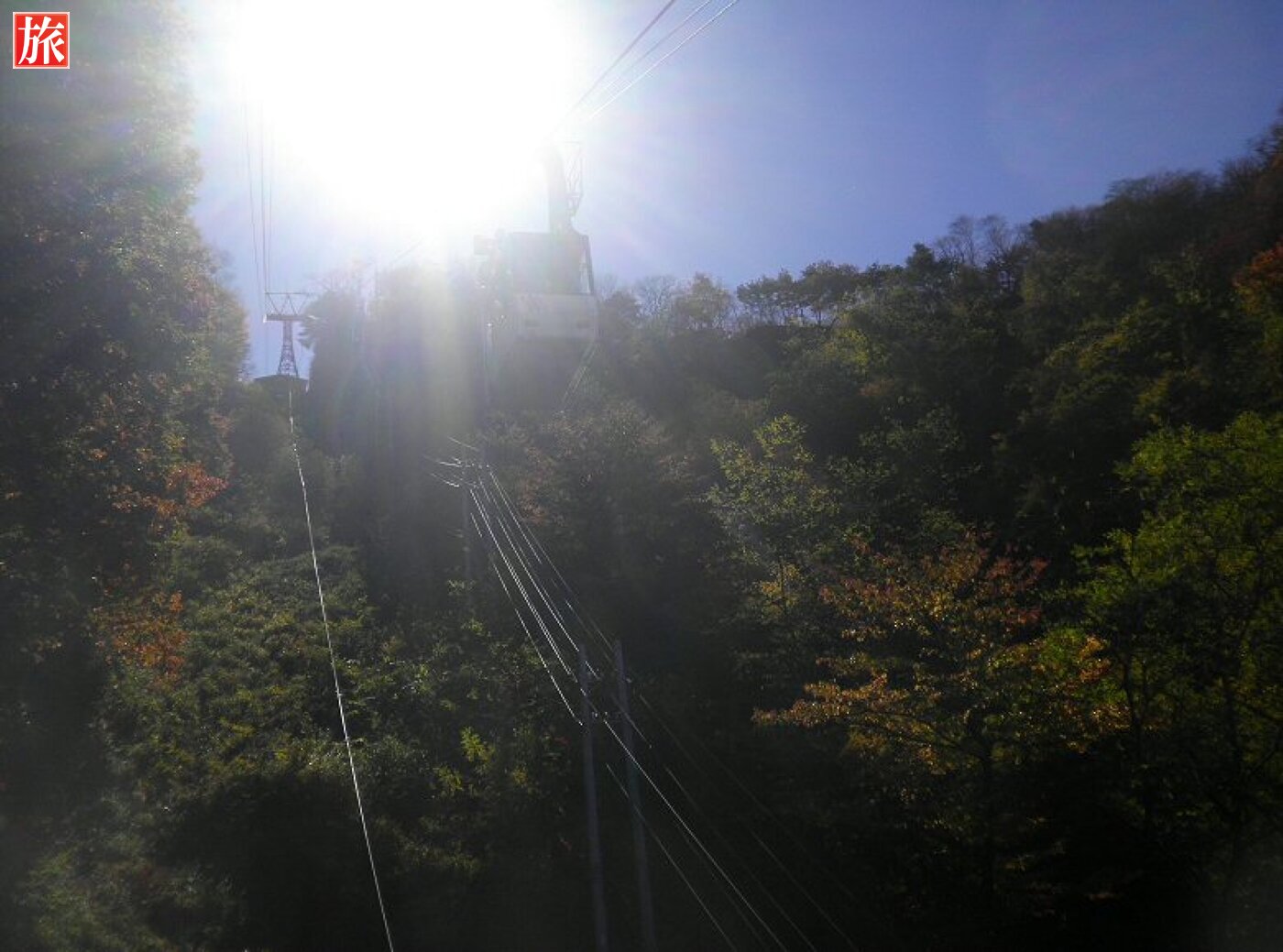 温泉街の不如帰(ホトトギス)駅から標高932メートルの見晴駅までの4分間を結ぶロープウェイ。