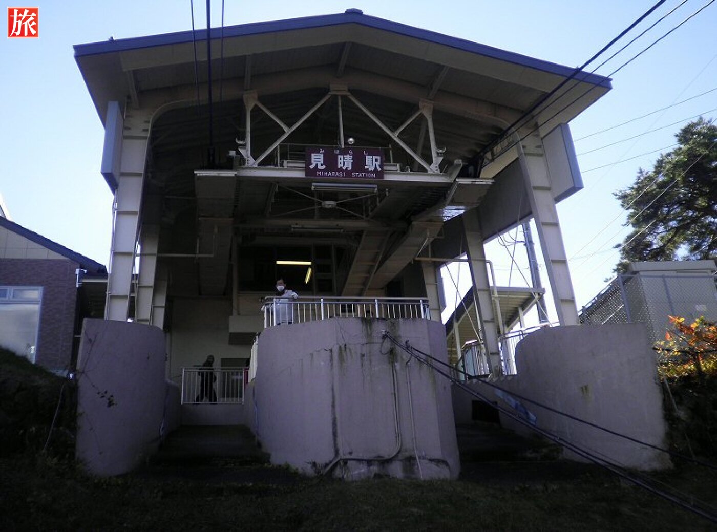 ここから見晴駅(ミハラシエキ)標高932mまで4分の空中散歩です。