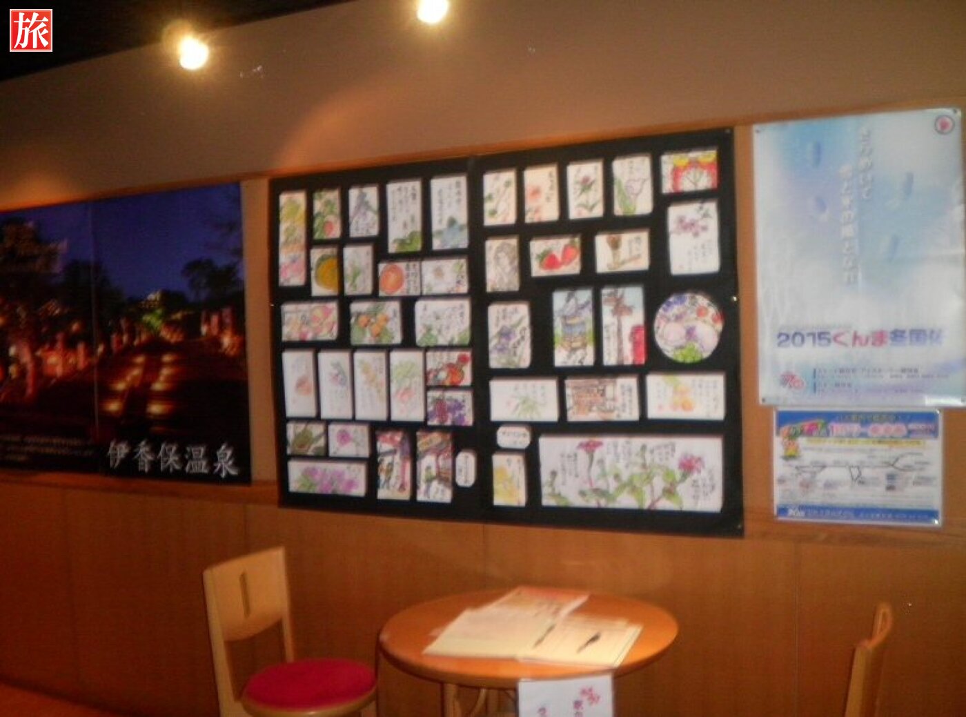 発車まで少し待ちます。絵や展示品が並んでいます。
