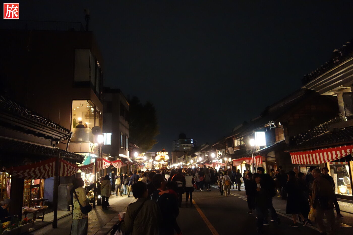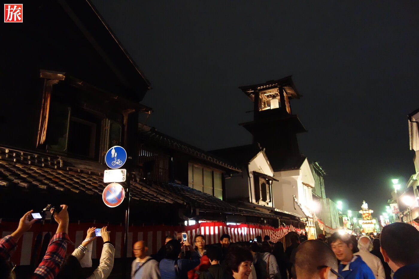山車曳行を中心とした川越まつりに行ってきました。山車の舞台上での囃子の演奏がありお祭り気分を盛り上げます。沢山の屋台・出店があり、散策も楽しい。蔵造りの町並みや時の鐘がある一番街商店街を観光しながら祭りを堪能!