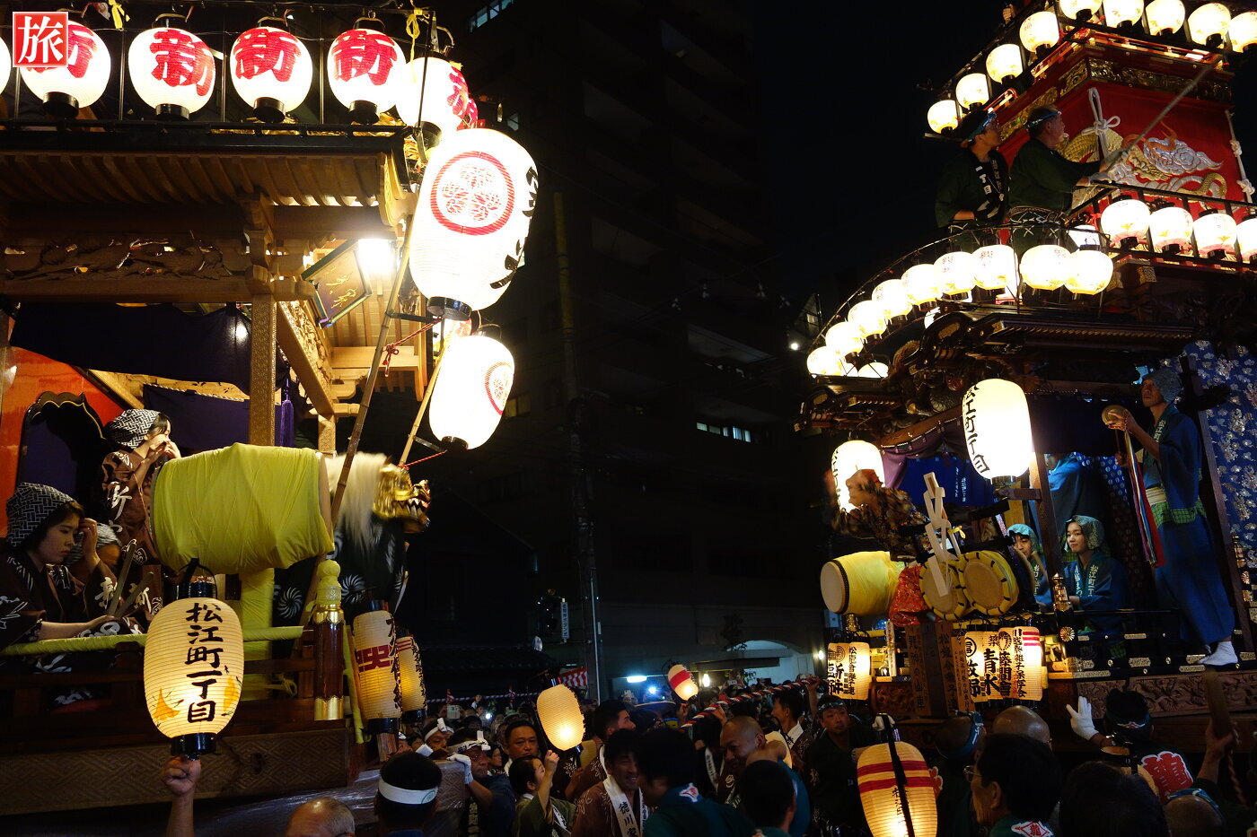 360年以上にわたり続く祭りで、昨年(2016年)にはユネスコの無形文化遺産に「山・鉾・屋台行事」の1つとして登録された。山車と山車を向かい合わせる「曳っかわせ」は見ものでした。