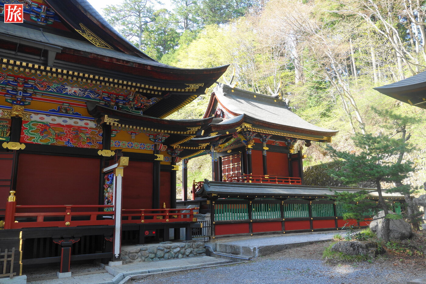 今から約1900年前、日本武尊の創建と伝えられており、寛文元(1661)年に建立された春日造りの本殿と、権現造りの拝殿は極彩色の彫刻で内外を飾る。