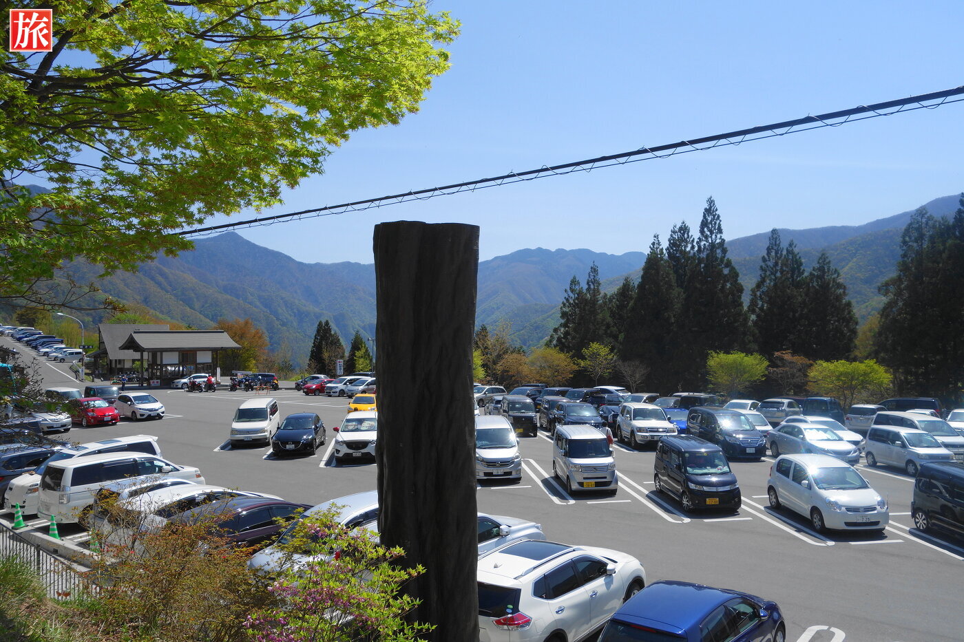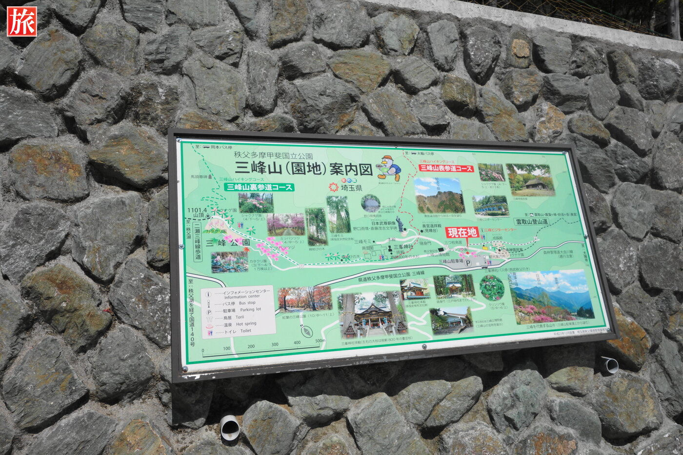 平日でしたが1日とゴールデンウィーク中で混雑していました。駐車場は40分程待ちました。三峯山(園地)の案内図。
