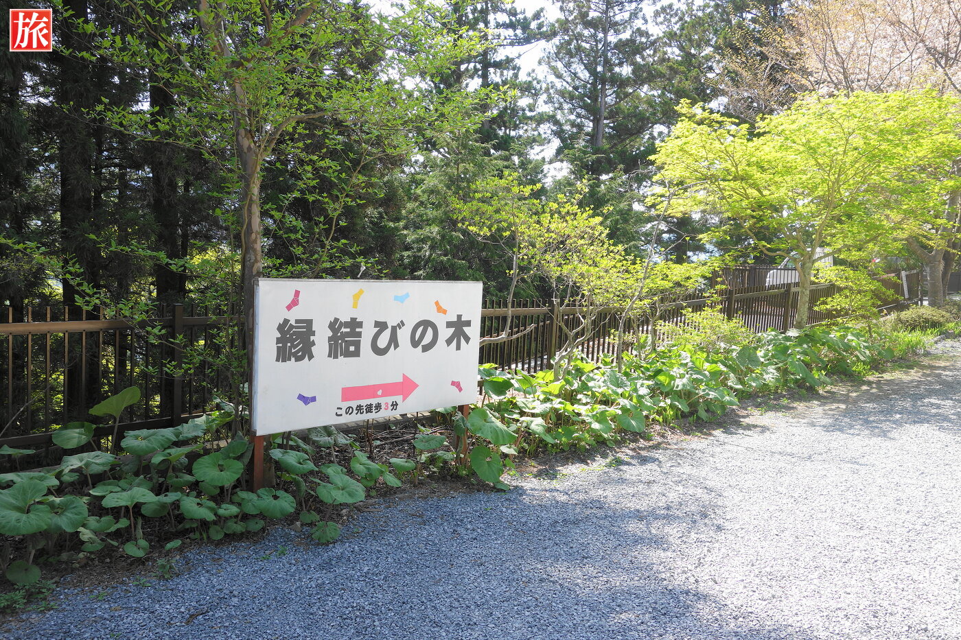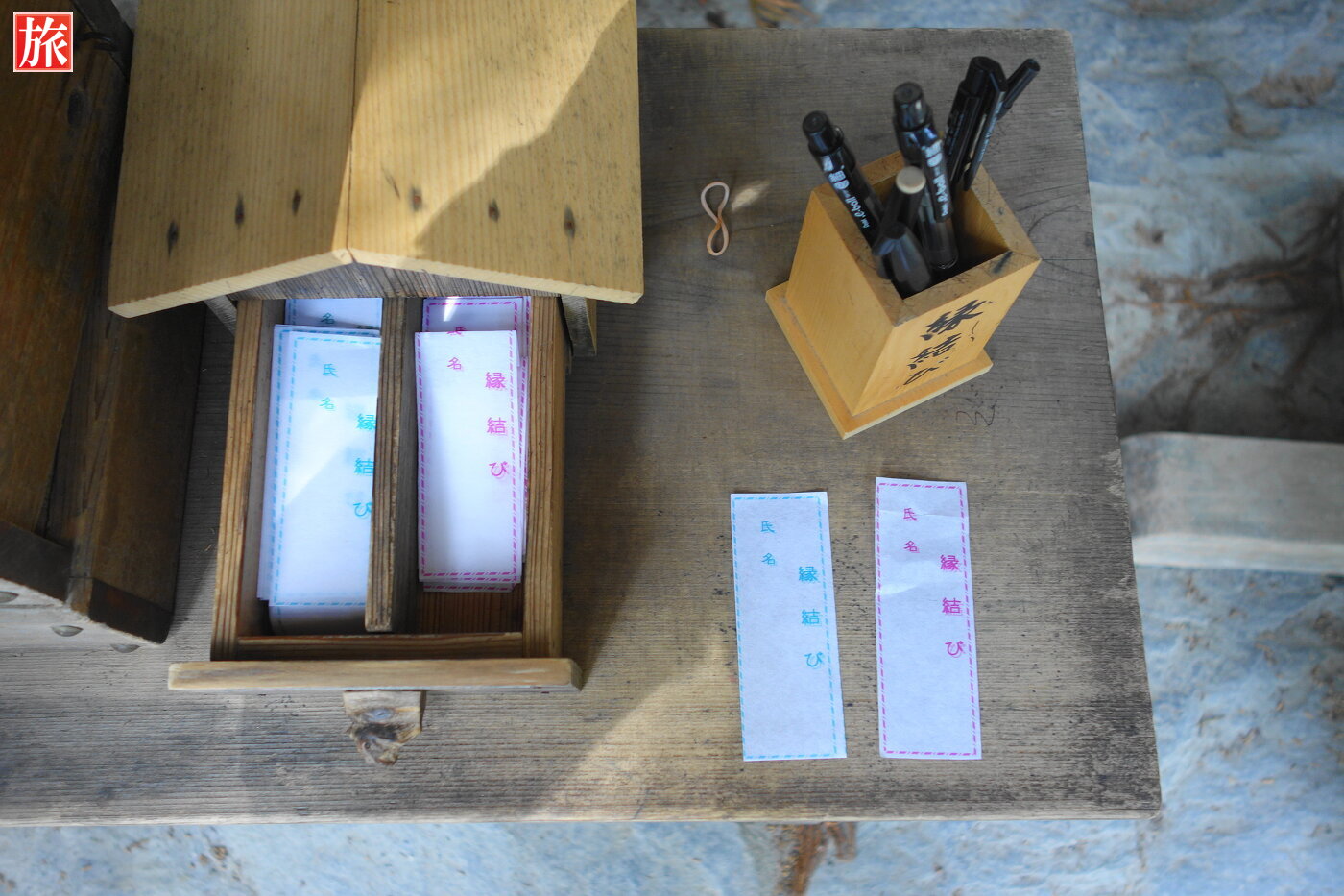 縁結びの木はこの先徒歩3分の所にあります。縁結びの木。備え付けの紙に好きな人の名前を書いて納めます。