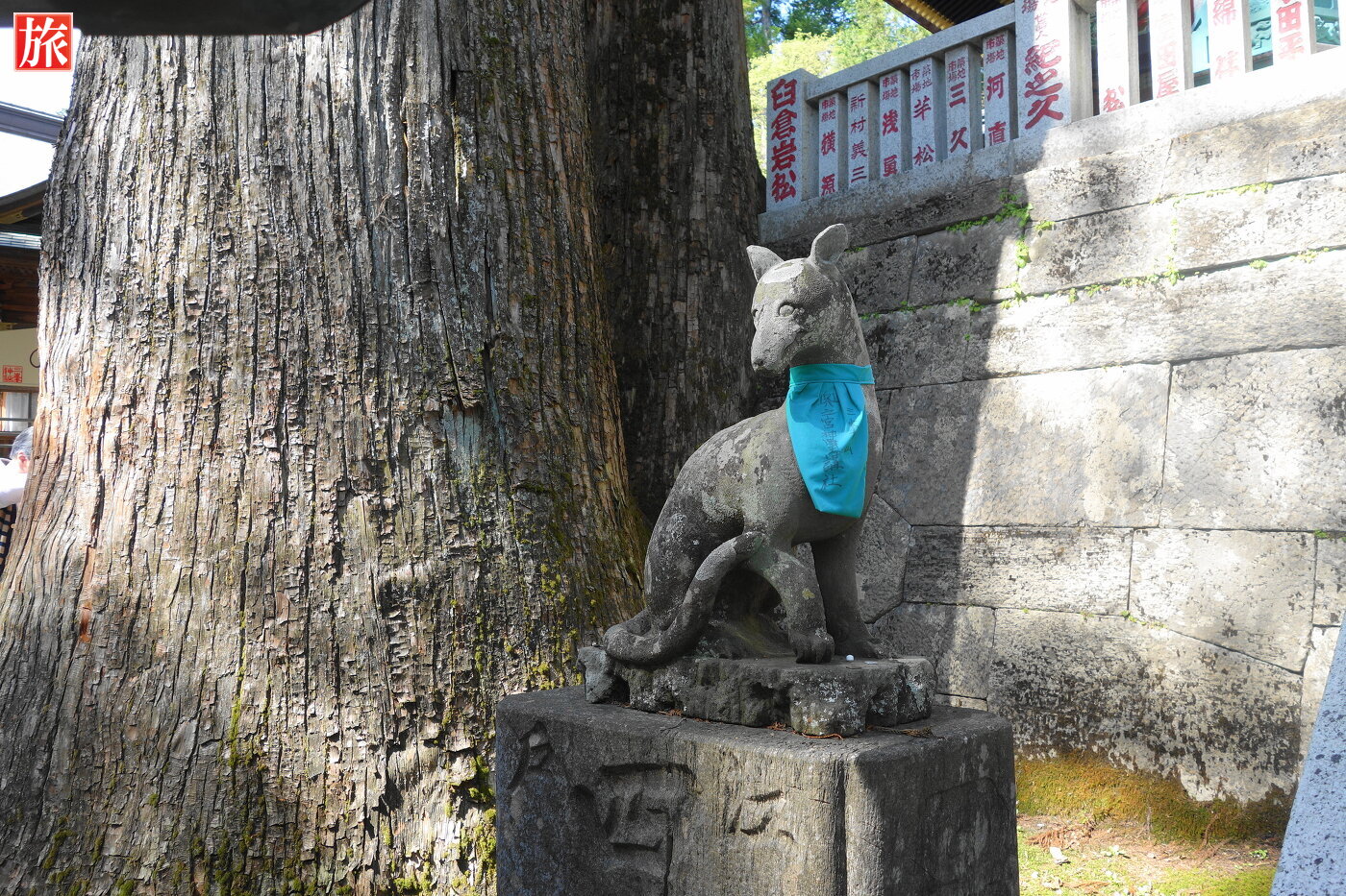 拝殿手前に鎮座する狼の狛犬。祓戸。神楽殿。