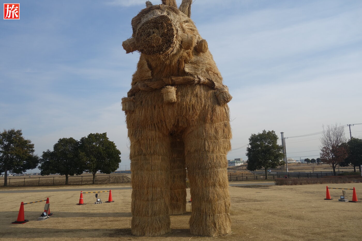 この2体のオブジェには田んぼアートの稲わらが使用されているそうです。