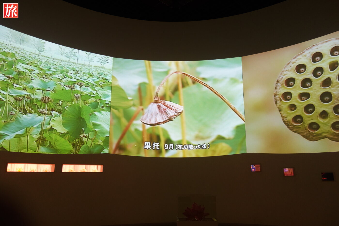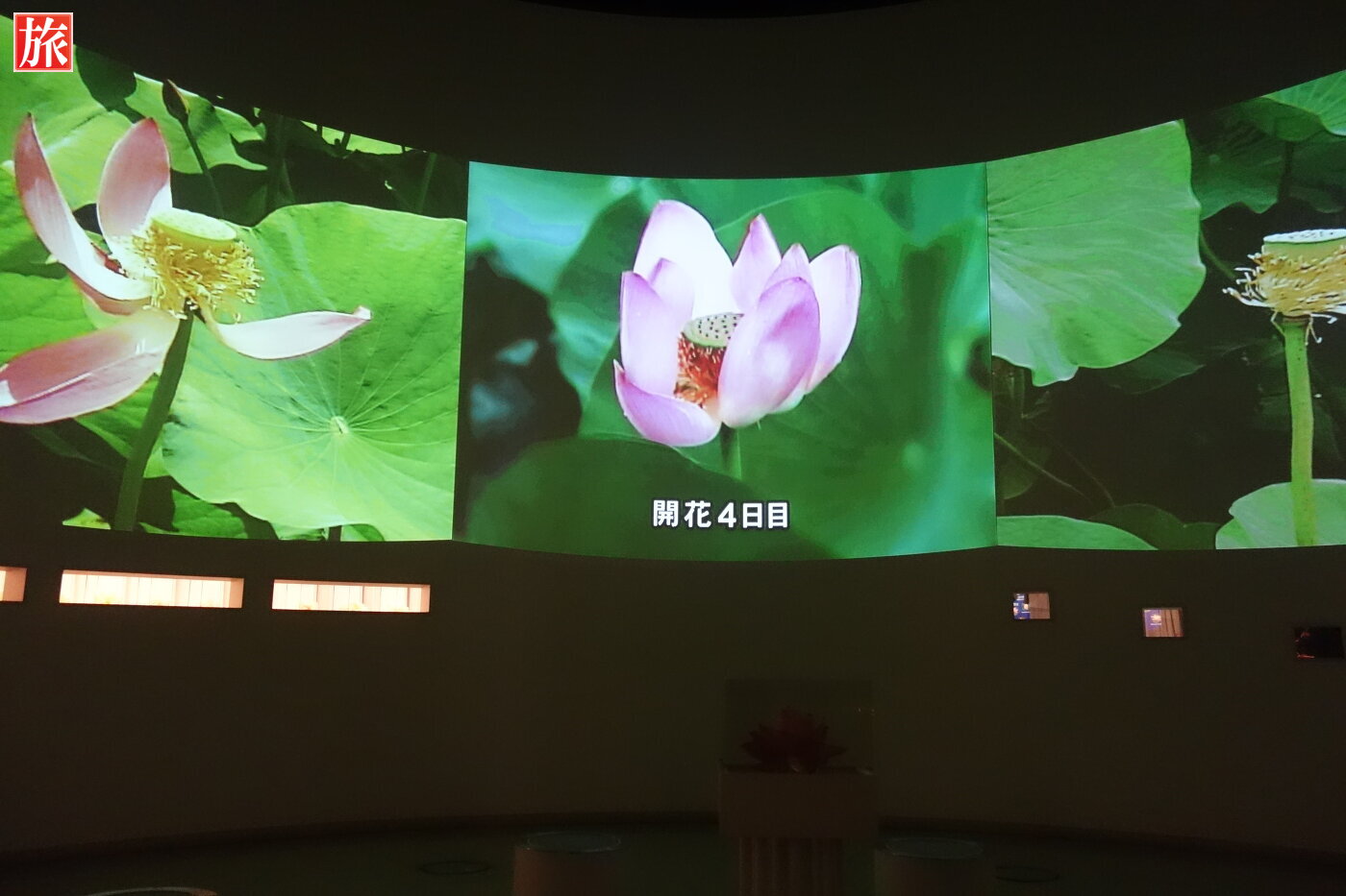 古代蓮の里に咲く21種類の花蓮のレプリカが飾ってあります。微妙に違う色合いや形など蓮の花の美しさを確認できます。