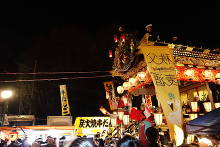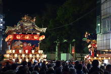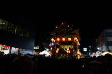 上町屋台。花火も打ち上がりますが、宵宮(よいみや)は規模が小さいようです。