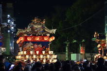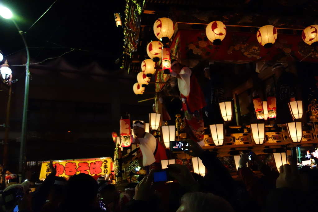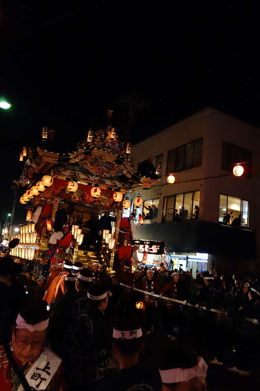 12月の例祭は 京都祇園祭、飛騨高山祭と共に日本三大曳山祭の1つとして有名です。今日は宵宮(よいみや)で朝から山車の曳きまわしが行われ山車、4基が市内を曳行します。明日の大祭(たいさい)では朝から山車の曳きまわしが行われ、6基の山車が勢ぞろいします。