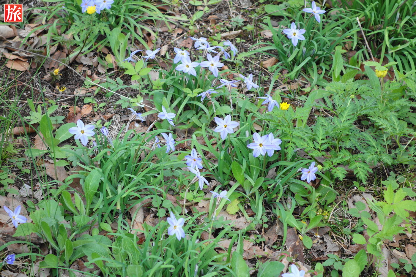 渓流広場。(みんなの原っぱ西側にある総延長700mの渓流広場)このエリアは色々なチューリップが花を咲かせていました。