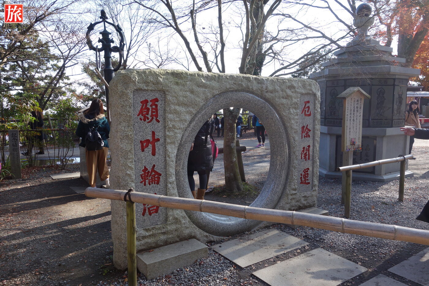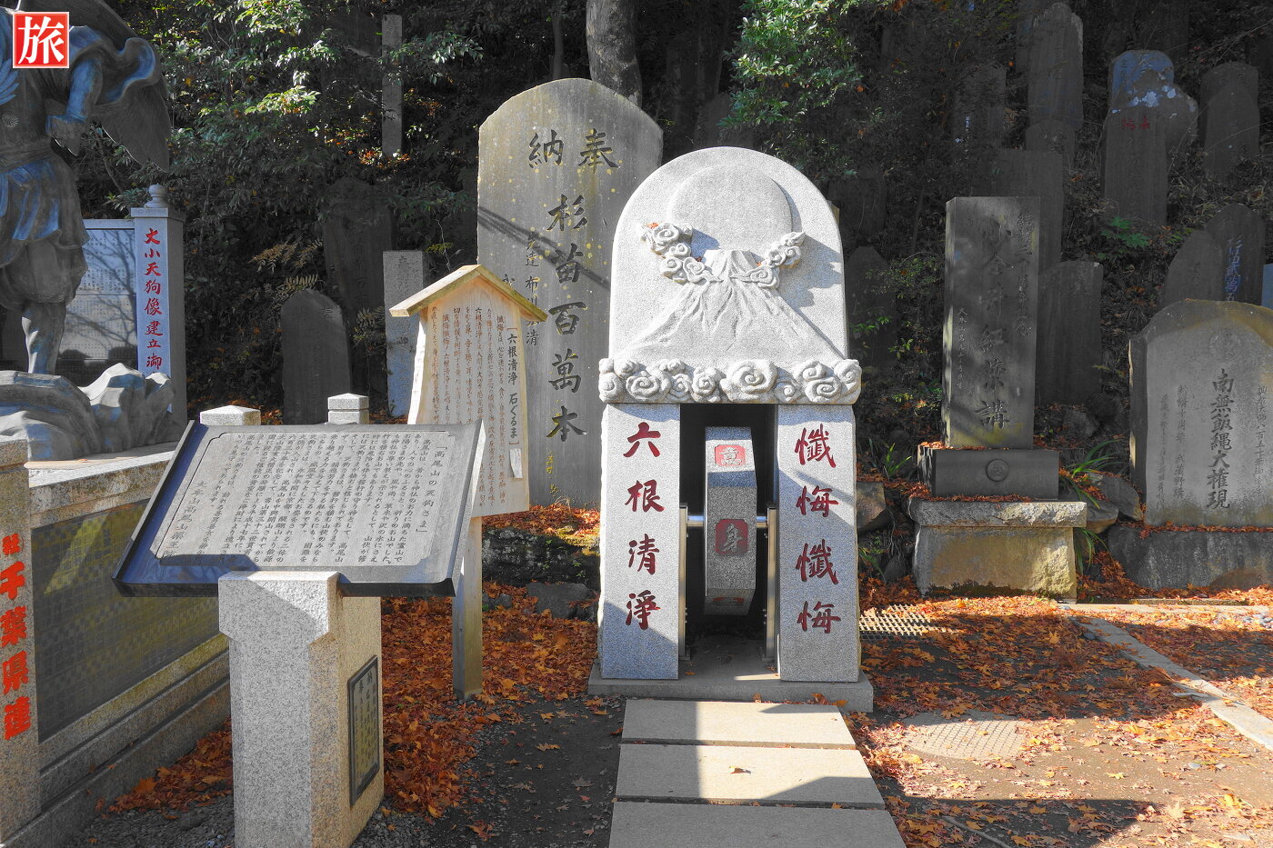 六根清浄 石ぐるま。向かって右が大天狗、左が小天狗像。願叶輪潜(ねがいかなうわくぐり)、ご本尊様の智慧の輪だそうです。