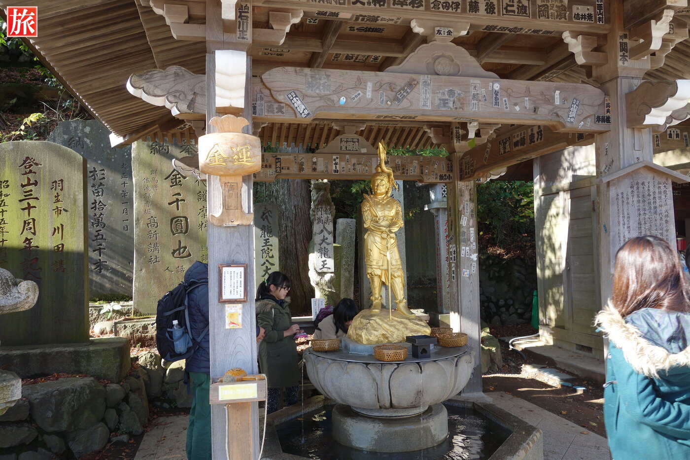 手水舎。金運アップには八大龍王堂の浄水で清めて、資本金として持ち帰ると良いそうです。縁結びスポット。修行大師の扁額がかかる・・・