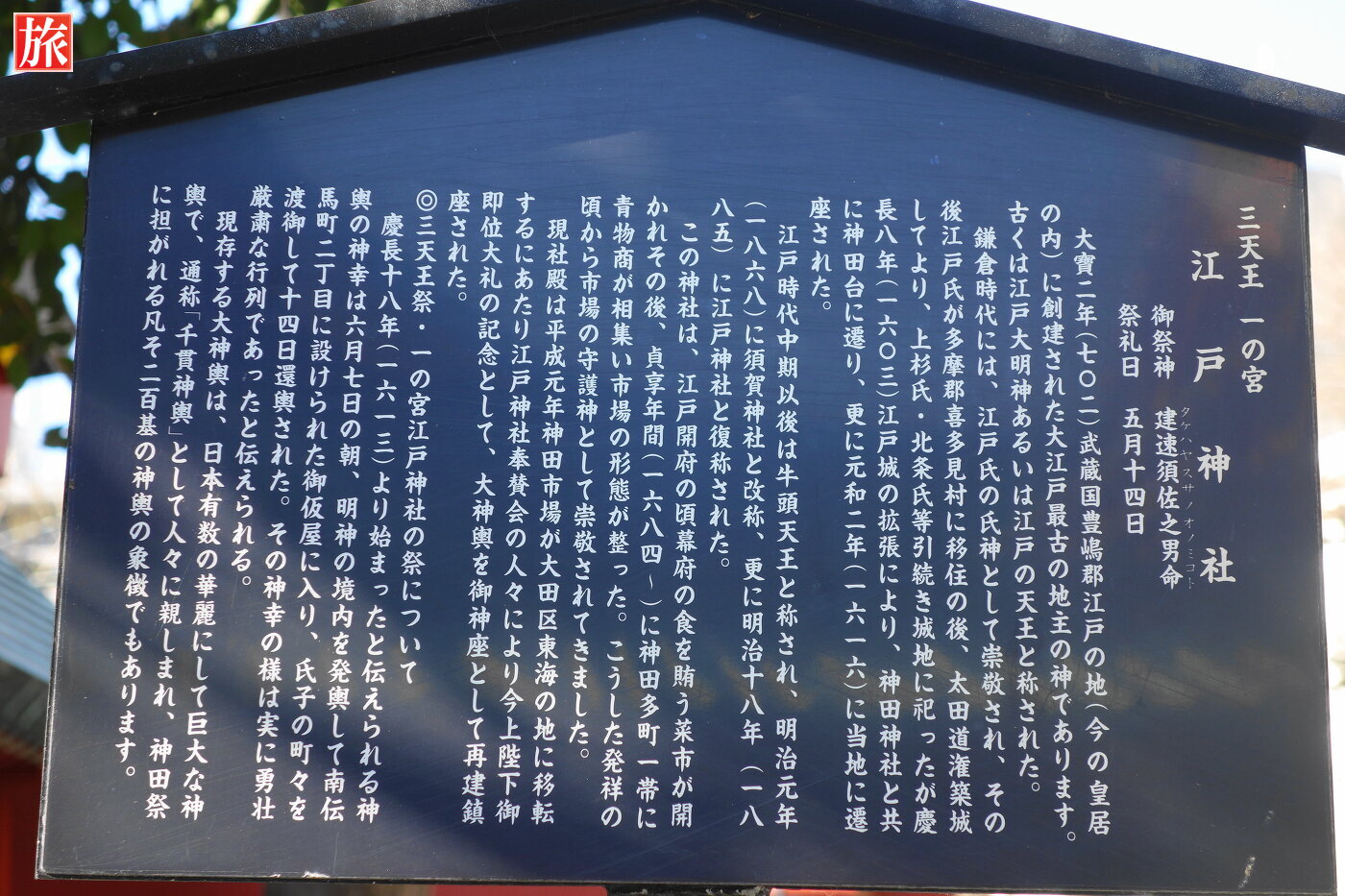 宇迦之御魂神を御祀りする浦安稲荷神社。建速須佐之男命を御祀りする江戸神社。江戸神社の説明。