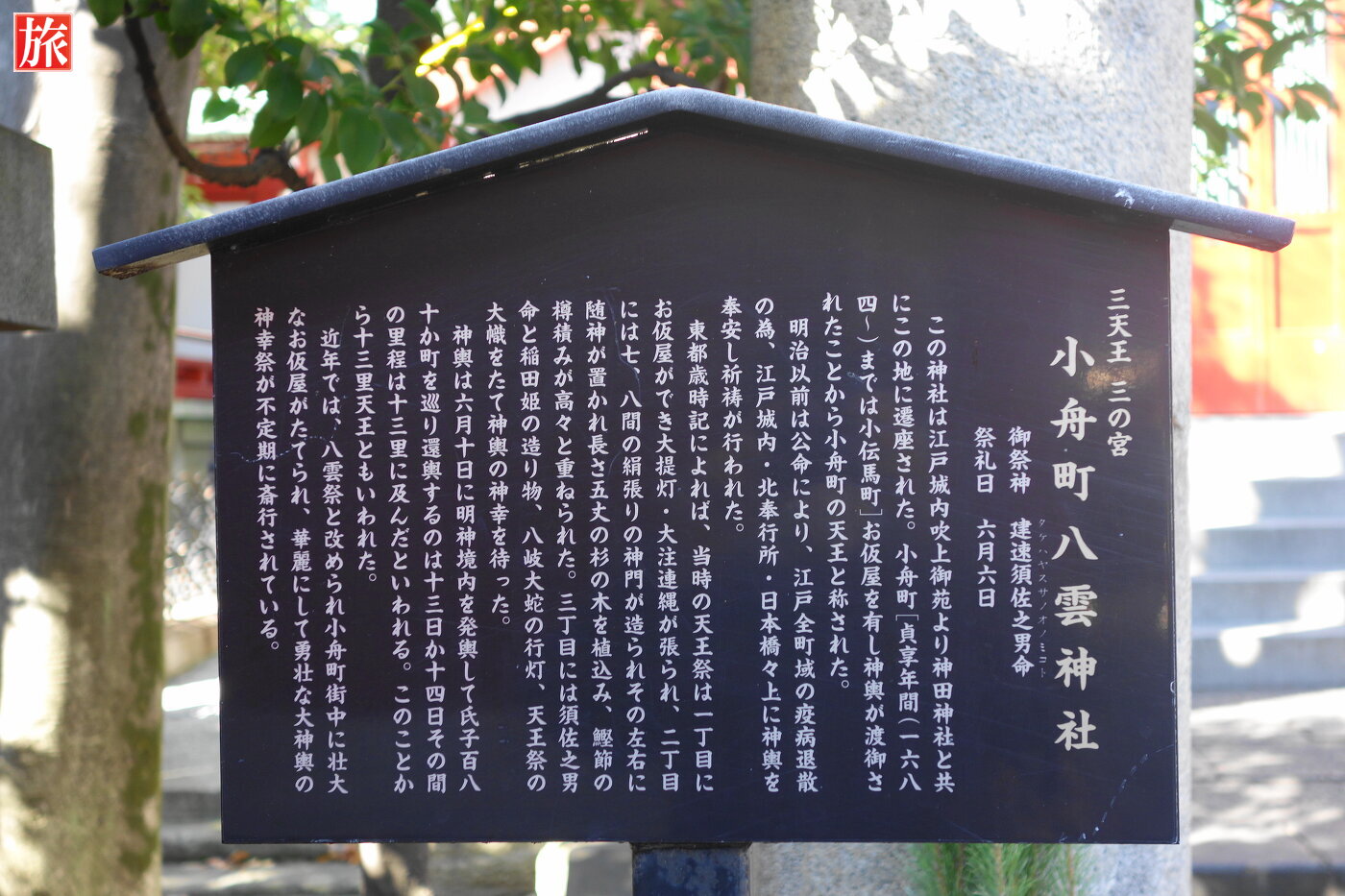 大伝馬町八雲神社。大伝馬町八雲神社の説明。小舟町八雲神社。小舟町八雲神社の説明。