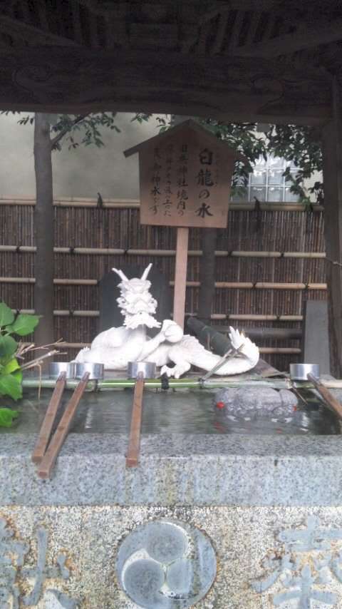 二之鳥居、手水社「田無神社境内深くから汲み上げた貴い御神水」