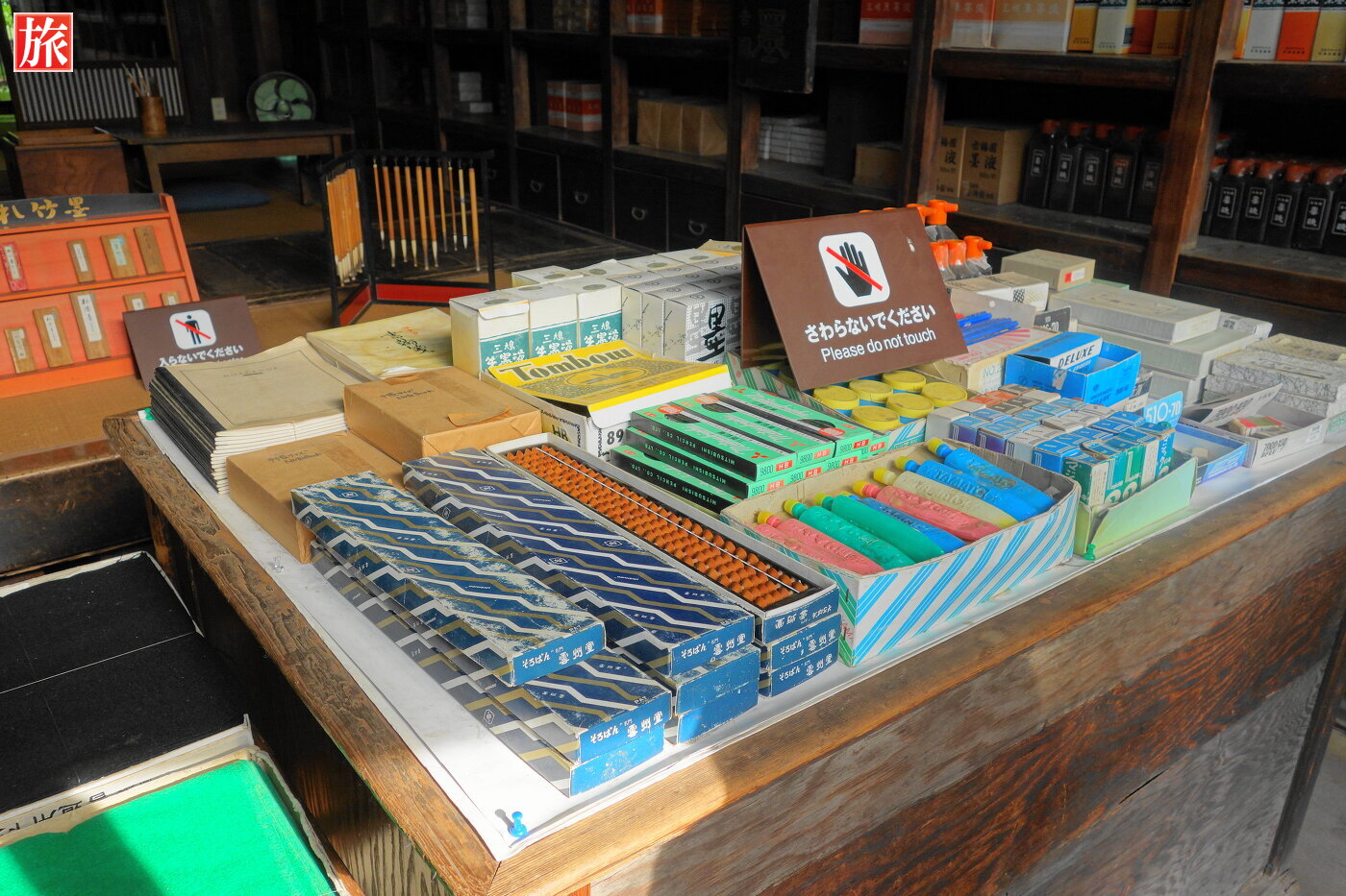 武井三省堂(文具店)。「千と千尋の神隠し」釜爺の仕事場のモデルになった場所です。左側にある天井まで続く、たっくさんの引き出しが印象的です。