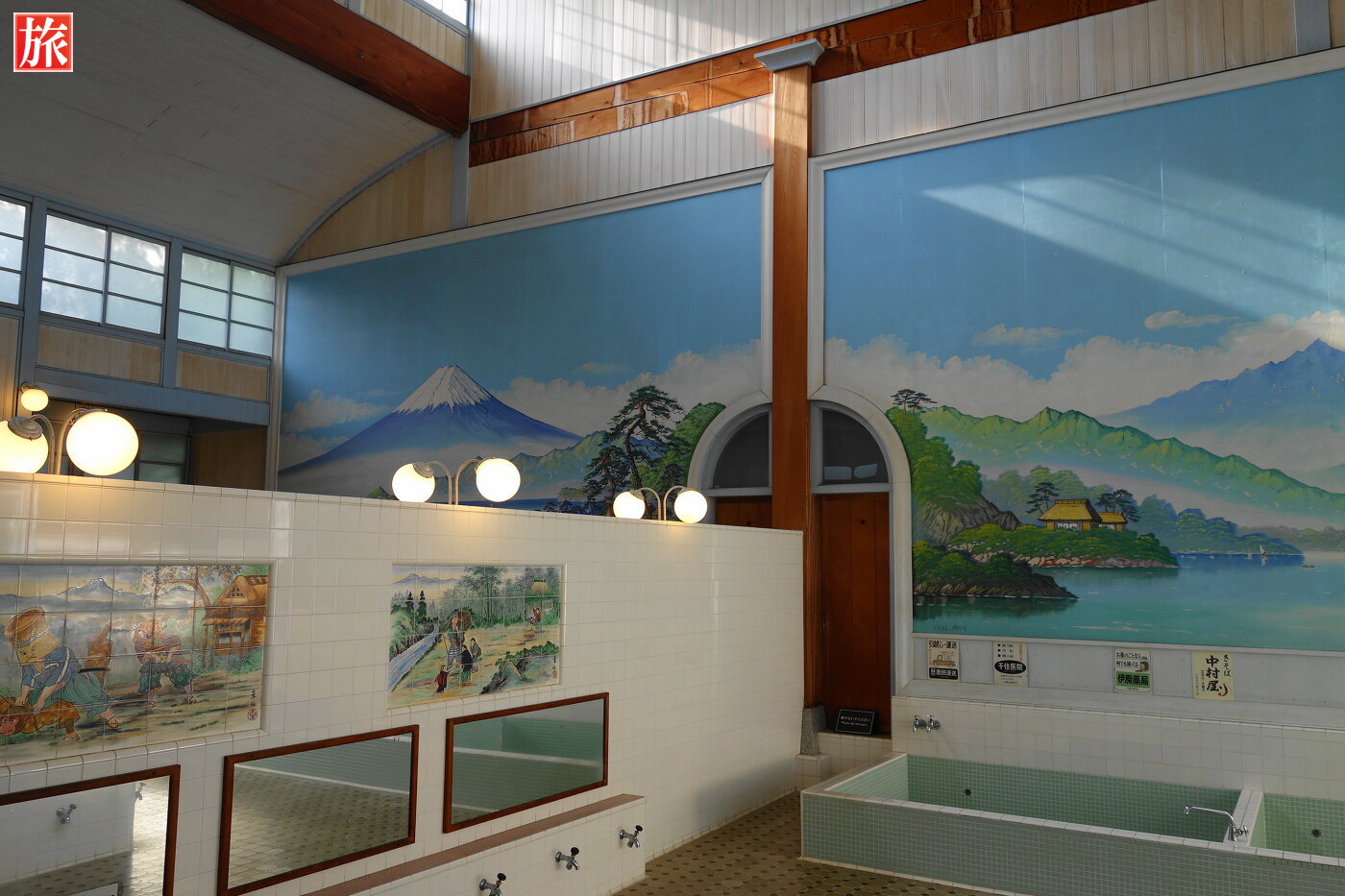 やっぱり銭湯の絵は富士山!今からで出よ〜なんて微笑ましい光景が目に浮かぶ。たしか子供頃、潜ってこの穴を通ったような・・・