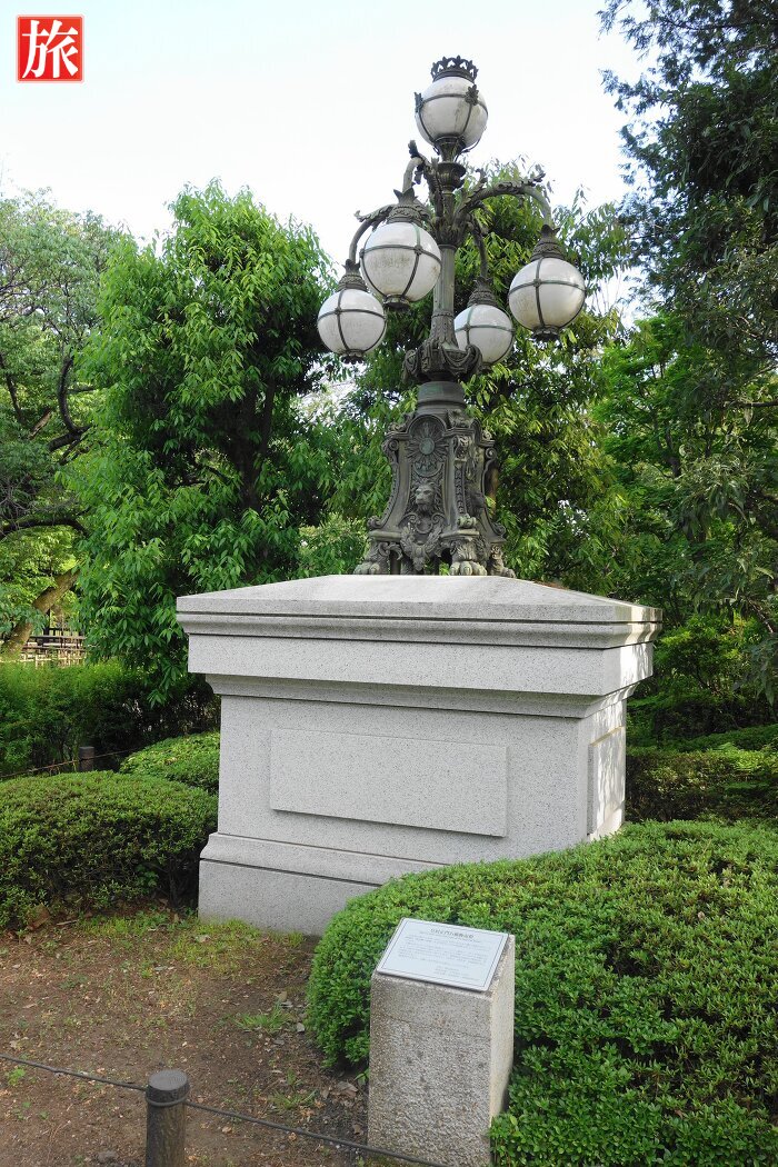 皇居正門石橋飾電燈、石橋の欄干両側にある男柱石に6基設置されていた一つ。万世橋交番(須田町交番)。上野消防署望楼。