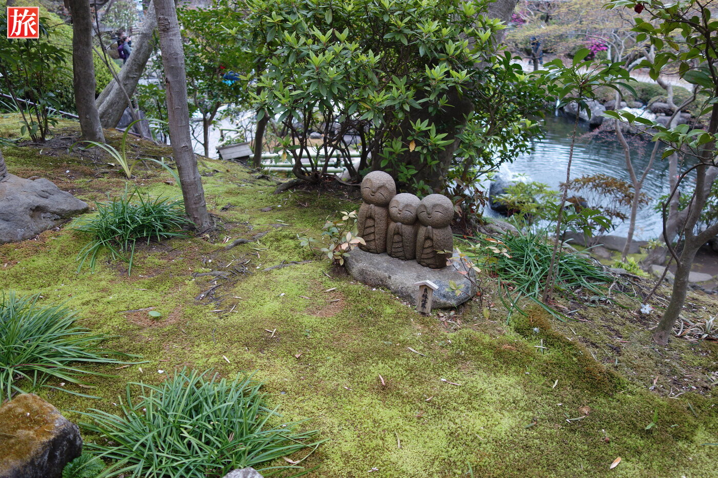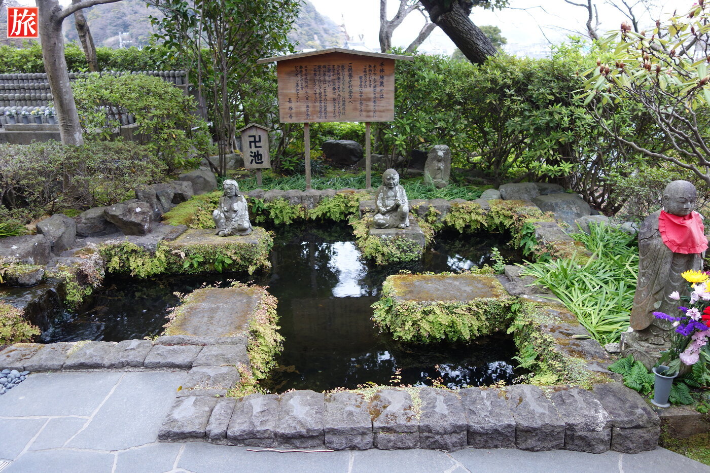 地蔵堂の横にある卍池(まんじいけ)。季節の花が綺麗!和み地蔵