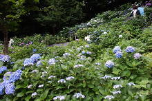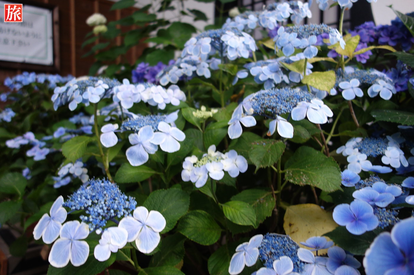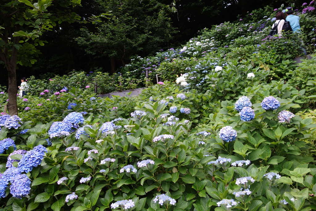 眺望散策路の周辺には40種類以上約2500株のアジサイが群生しており、梅雨の季節には眺望はもとより「アジサイの径(こみち)」として散策も楽める。