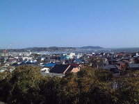 桜と観音堂。あいにくの天気でしたが、相模湾の雄大な眺望が広がる見晴台。
