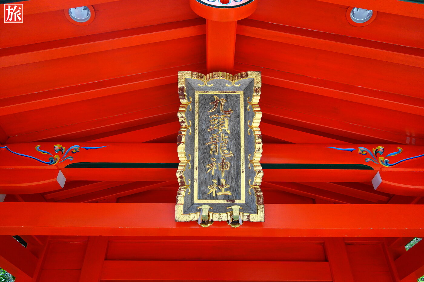 九頭龍神社は縁結びの神社として、特に女性に人気がるようです。九頭龍神社の説明。拝殿に掛かる扁額。