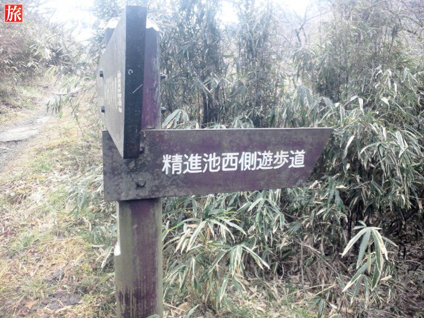 北側から見た精進池。東側から見た精進池。遊歩道の標識。