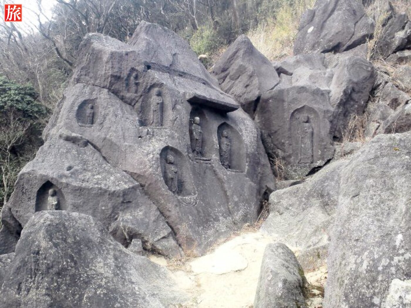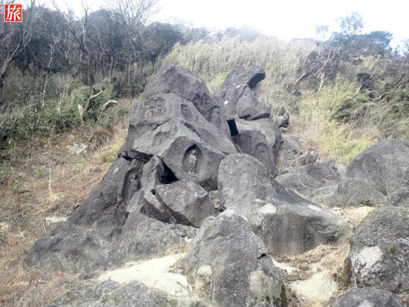 来た道を精進池方向に戻り、小涌谷(北)方向へ少し進むと全国各地に伝説の残る「八百比丘尼の墓」のがありました。墓の側にあった磨崖仏。
