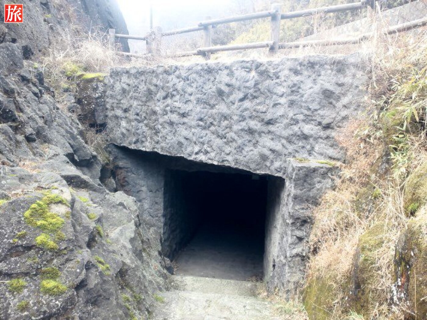 東側からトンネルを見た様子。ちょっとした崖に仏様が彫ってあります。