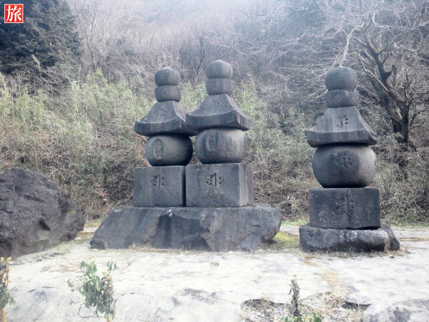 二十五菩薩像からさらに芦の湯方面に進んだところに立つ3基の石造五輪塔。