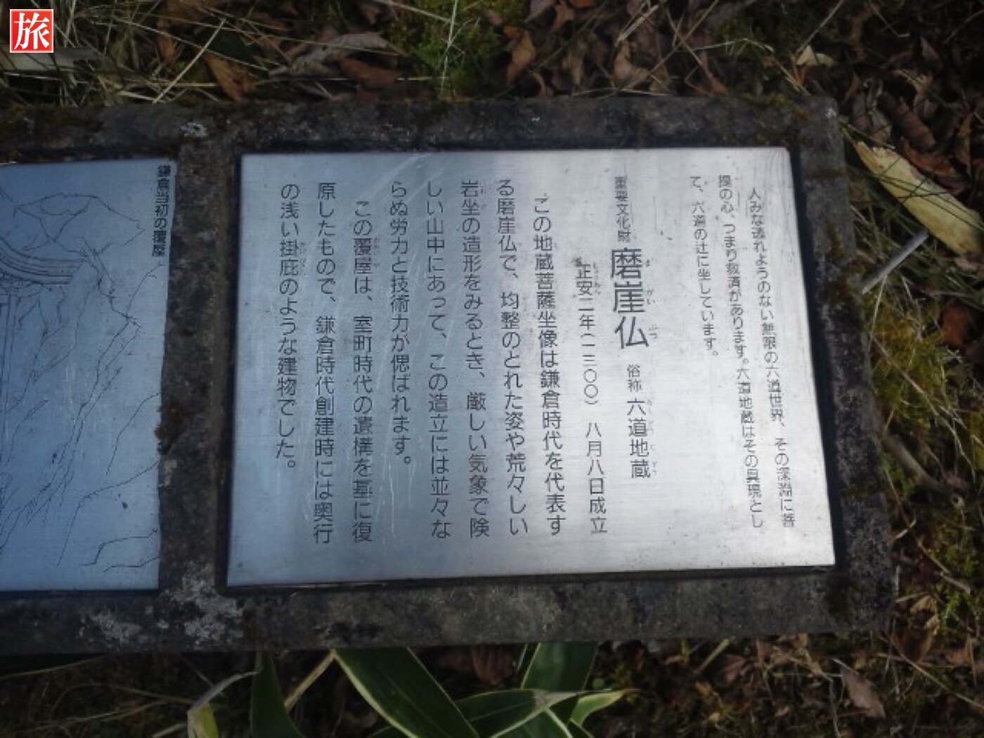 地蔵菩薩像「六道地蔵」は高さが約3.5mもあり、鎌倉時代の磨崖仏としては関東一の大きさを誇っている。木造の建物におおわれていて、その大きさと雰囲気からは迫力が感じられる。