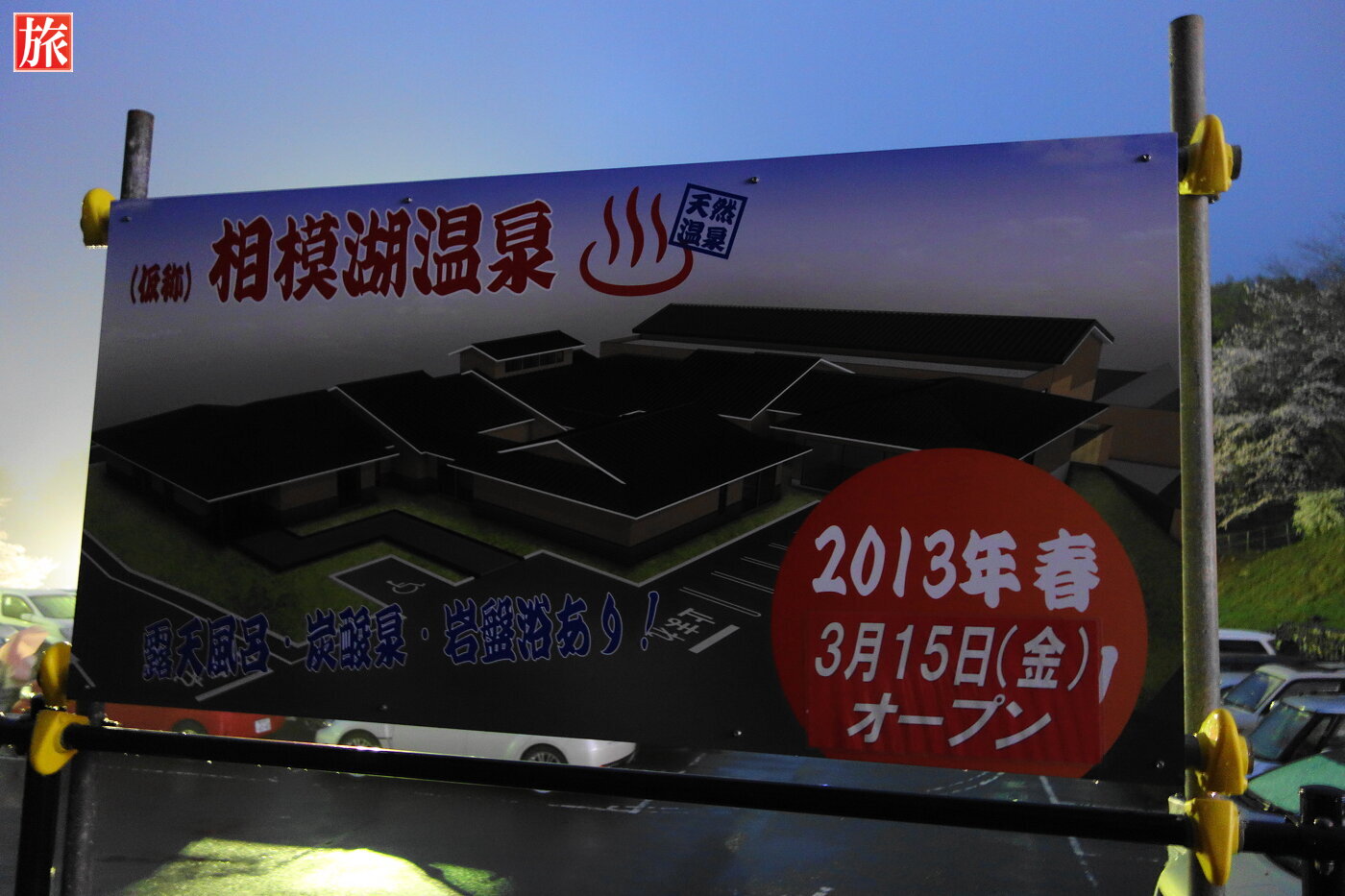 駐車場からゲートへ向かう通路、相模湖温泉が3月15日オープンしたみたいです。