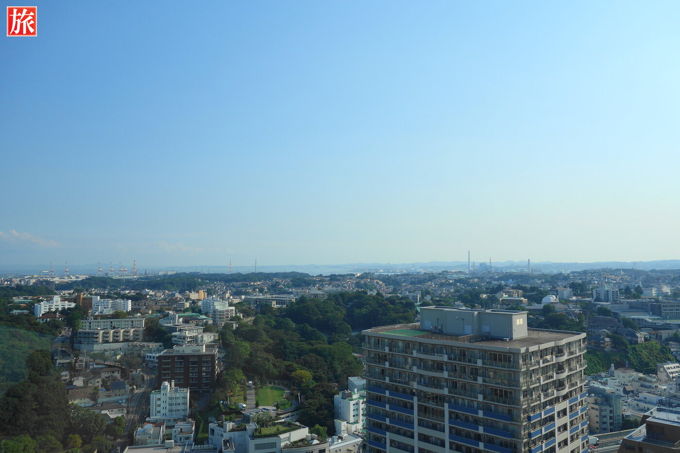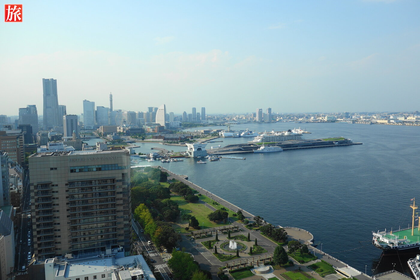 30階、展望フロアからの風景。大桟橋方向。みなとみらい21地区方向。