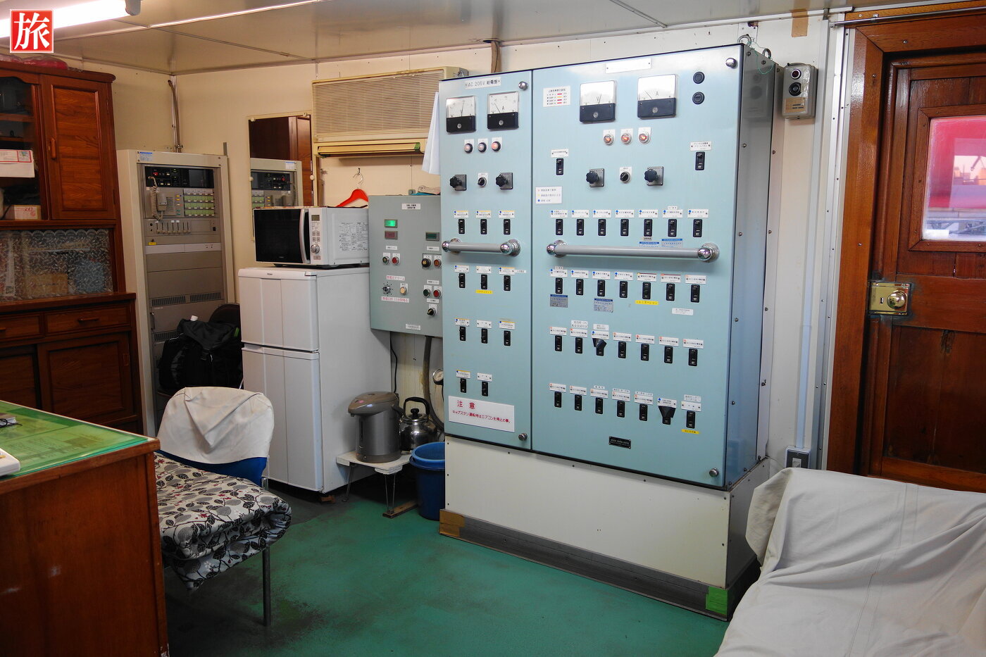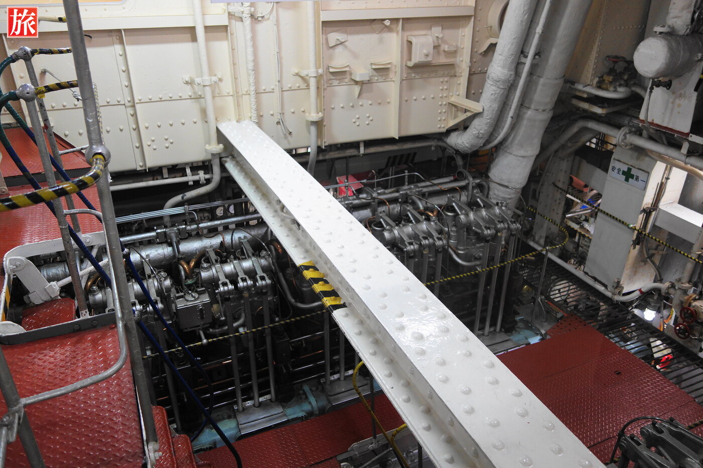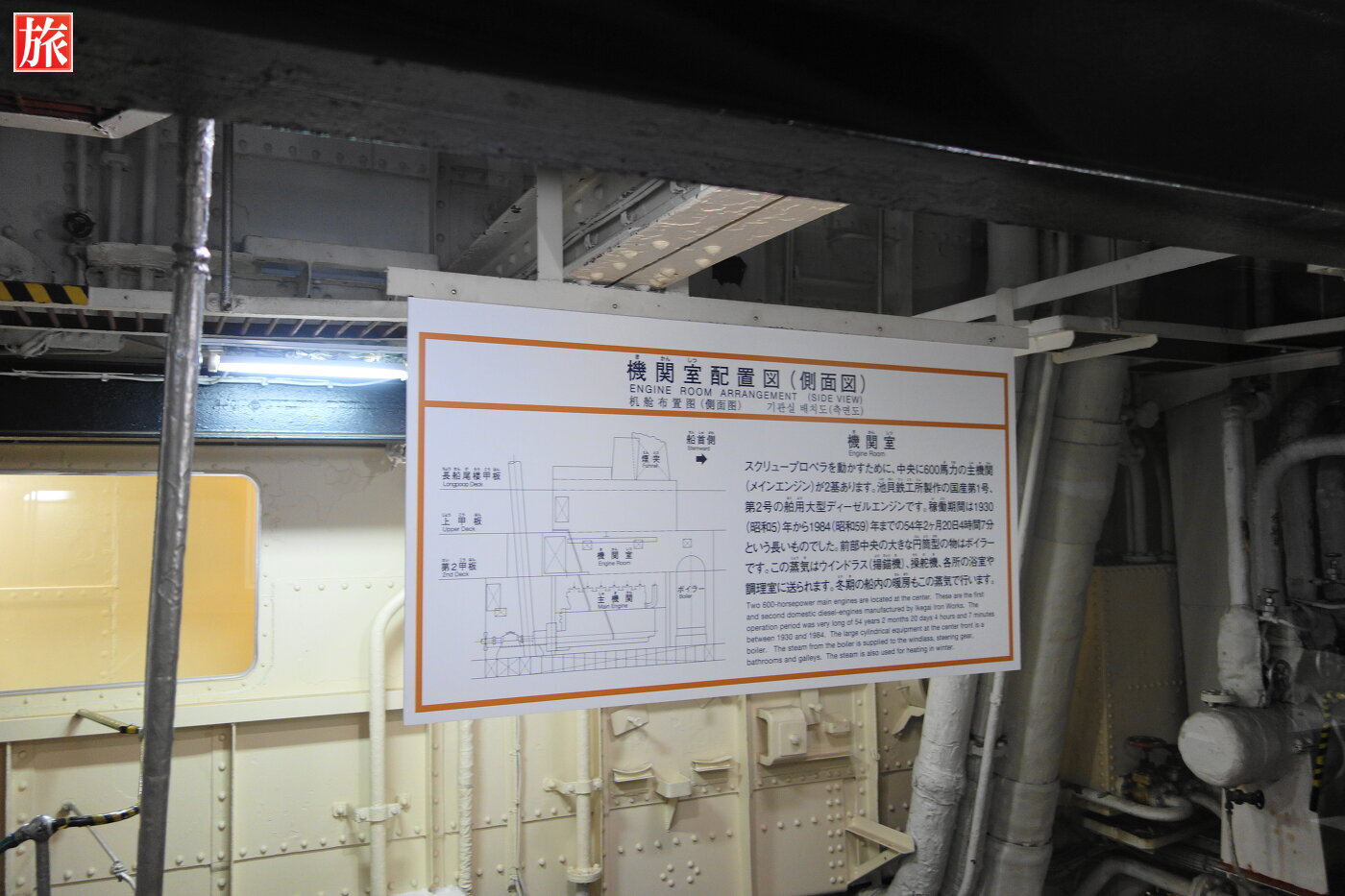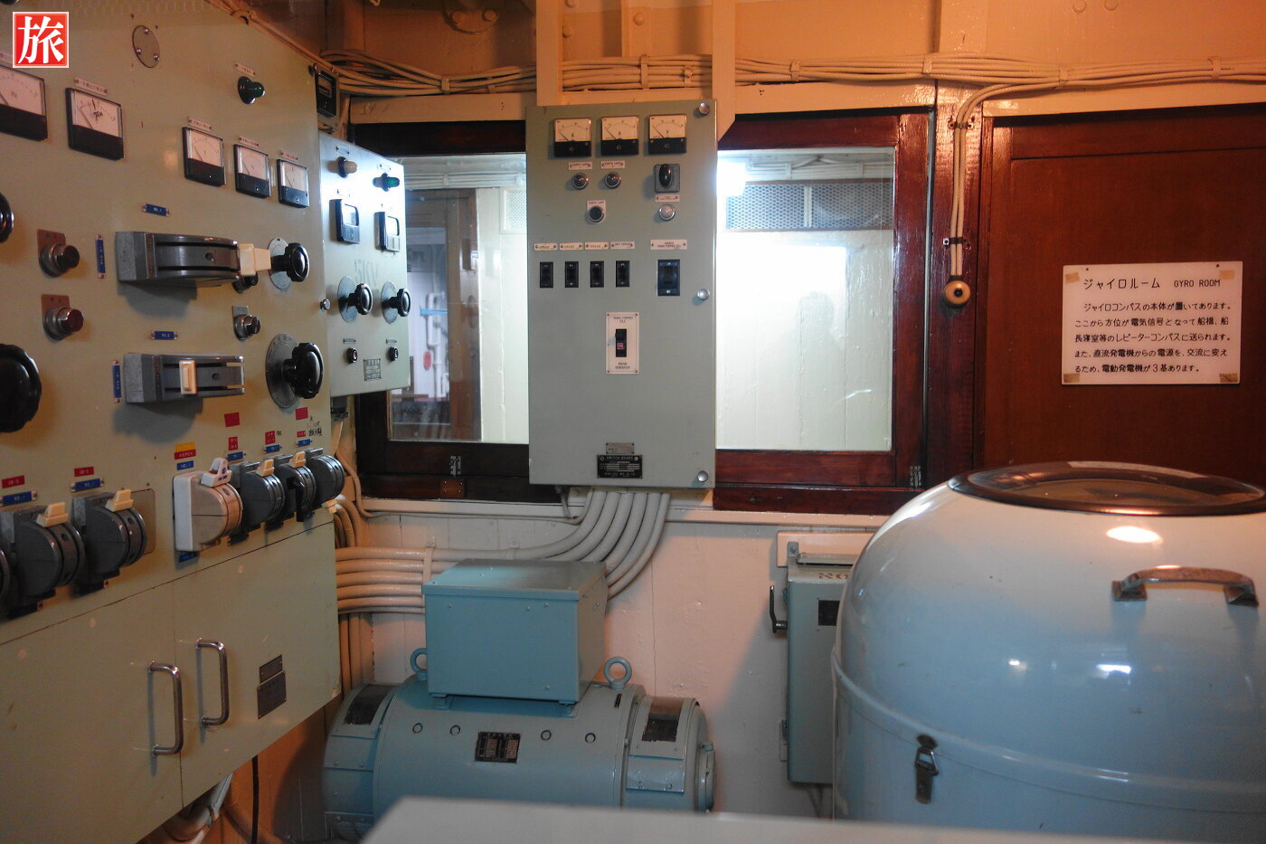 機関室。スクリュープロペラを動かす為に600馬力のディーゼルエンジンが2基あります。機関室配置図。ジャイロルーム。